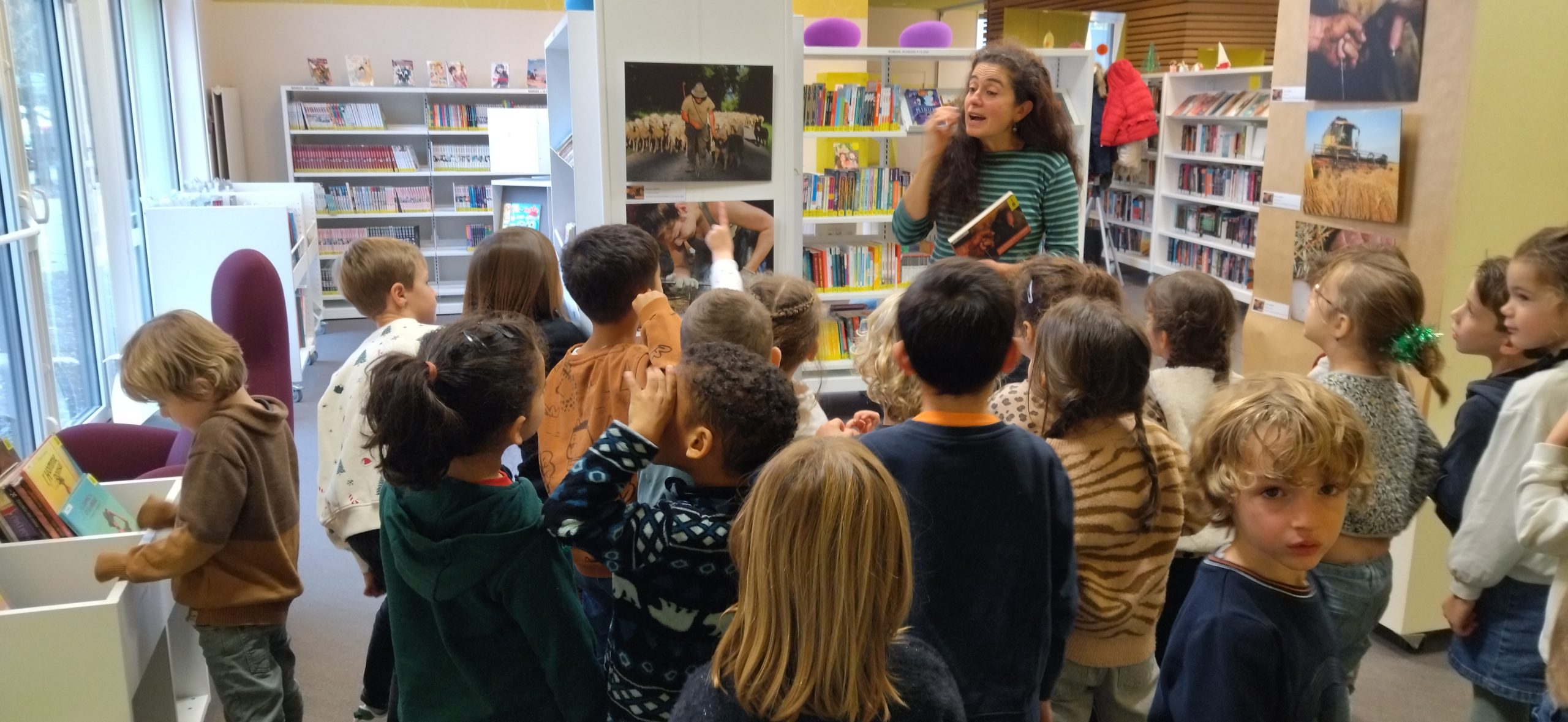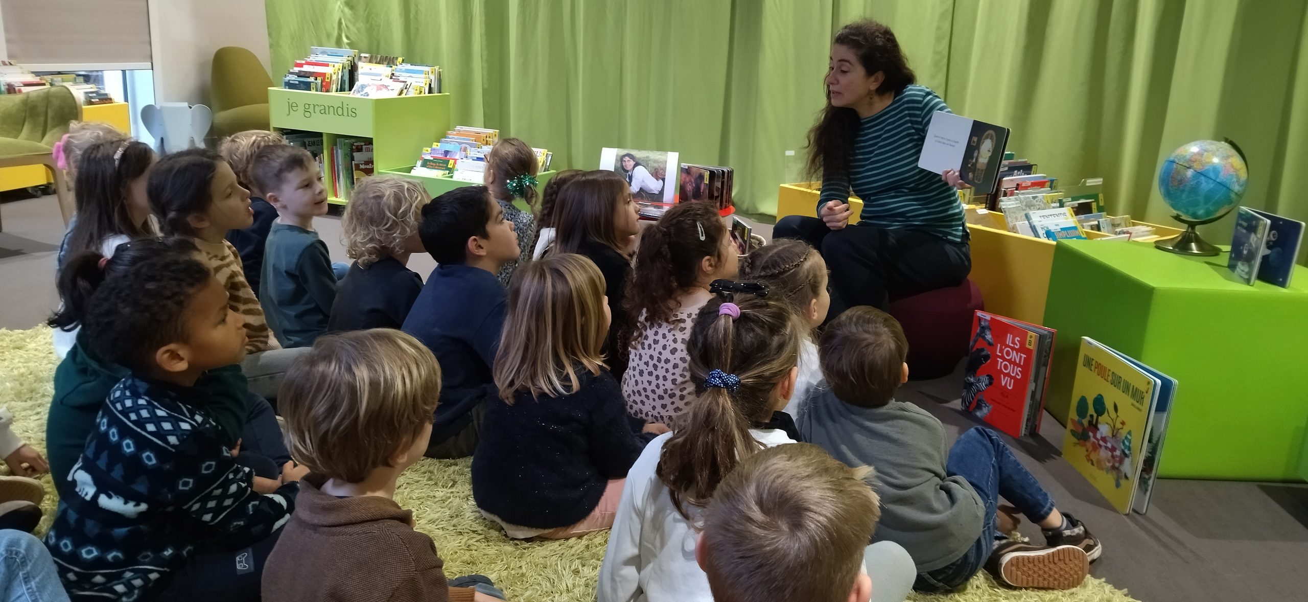 Nous nous sommes rendus à la médiathèque de Beaupré le 21 novembre (classe d’Isabelle) et le 28 novembre (classe de Noranne). Nous avons été accueillis par l’animatrice Vanessa qui nous a conduit au sein de l’espace dédié aux enfants. Confortablement installés, nous l’écoutons raconter plusieurs belles histoires dans lesquelles les illustrations sont de vraies photographies.