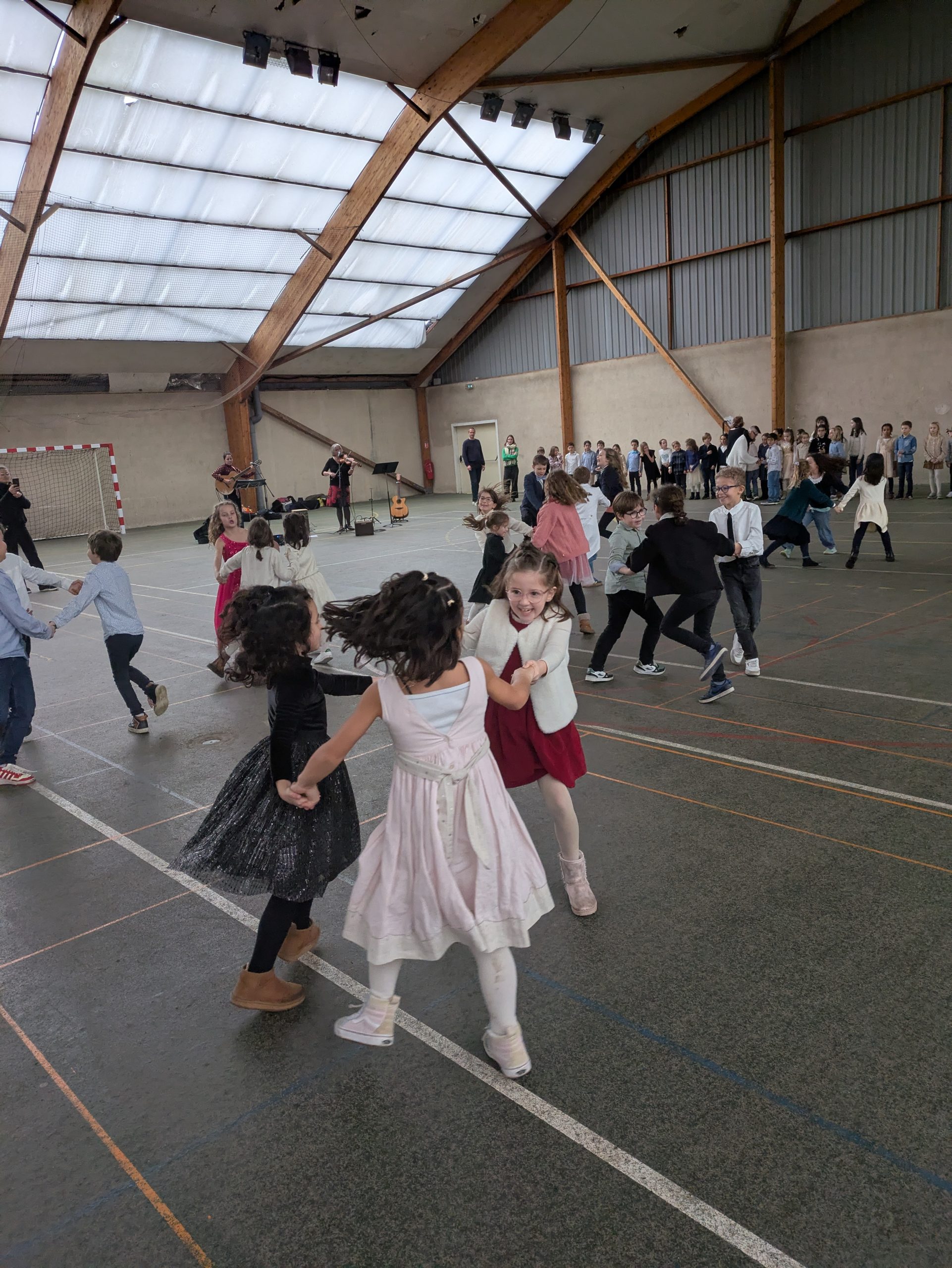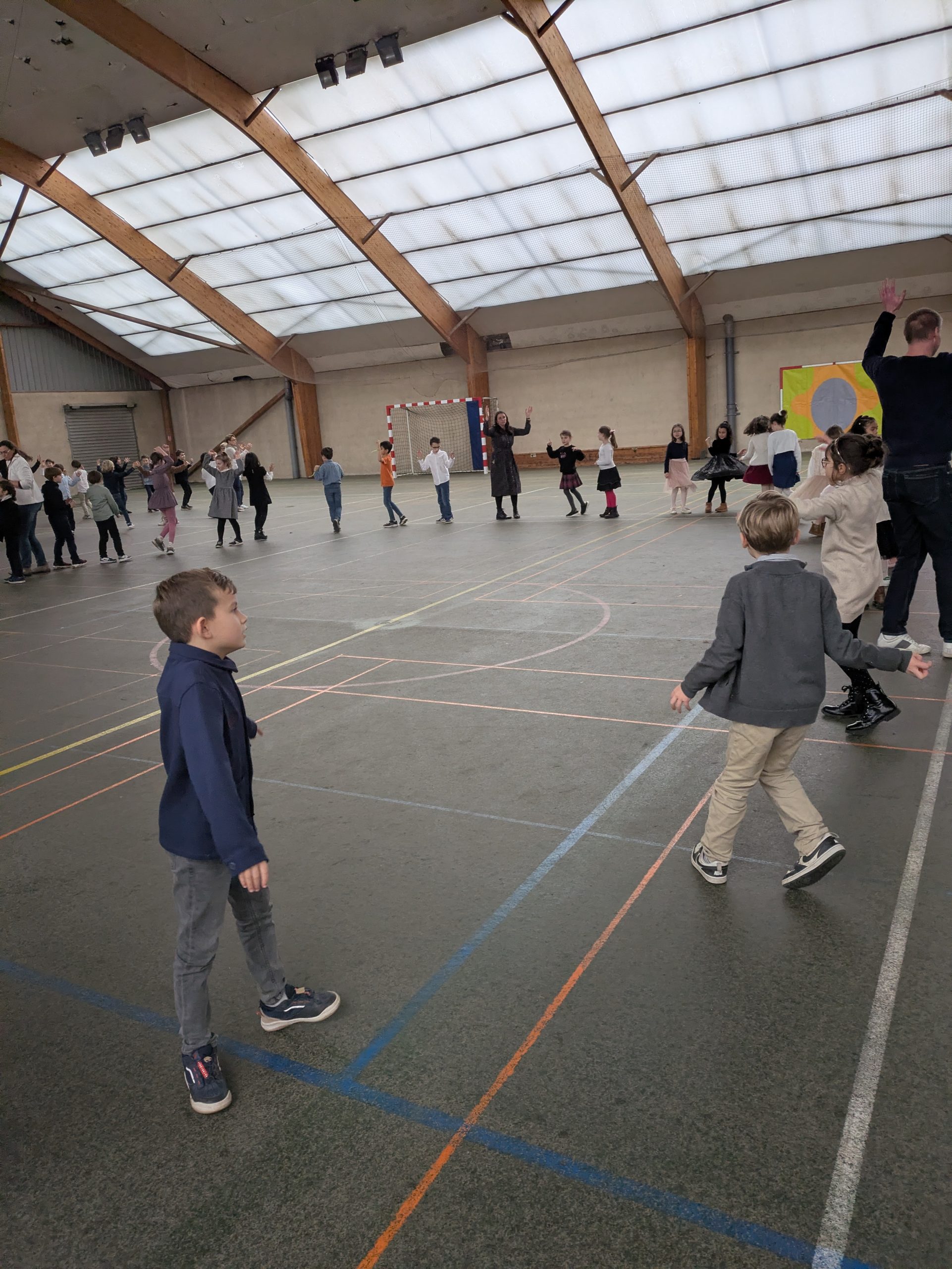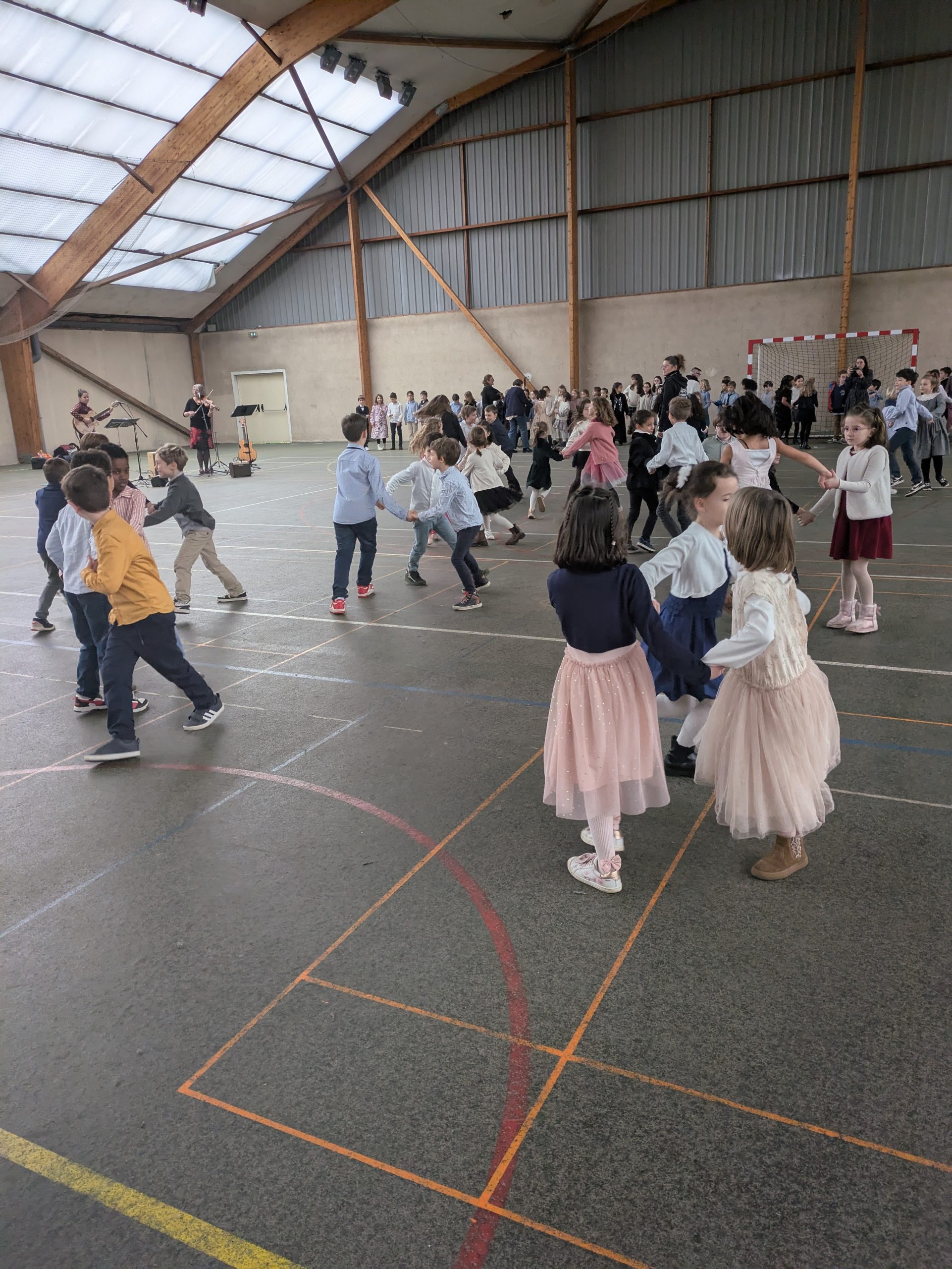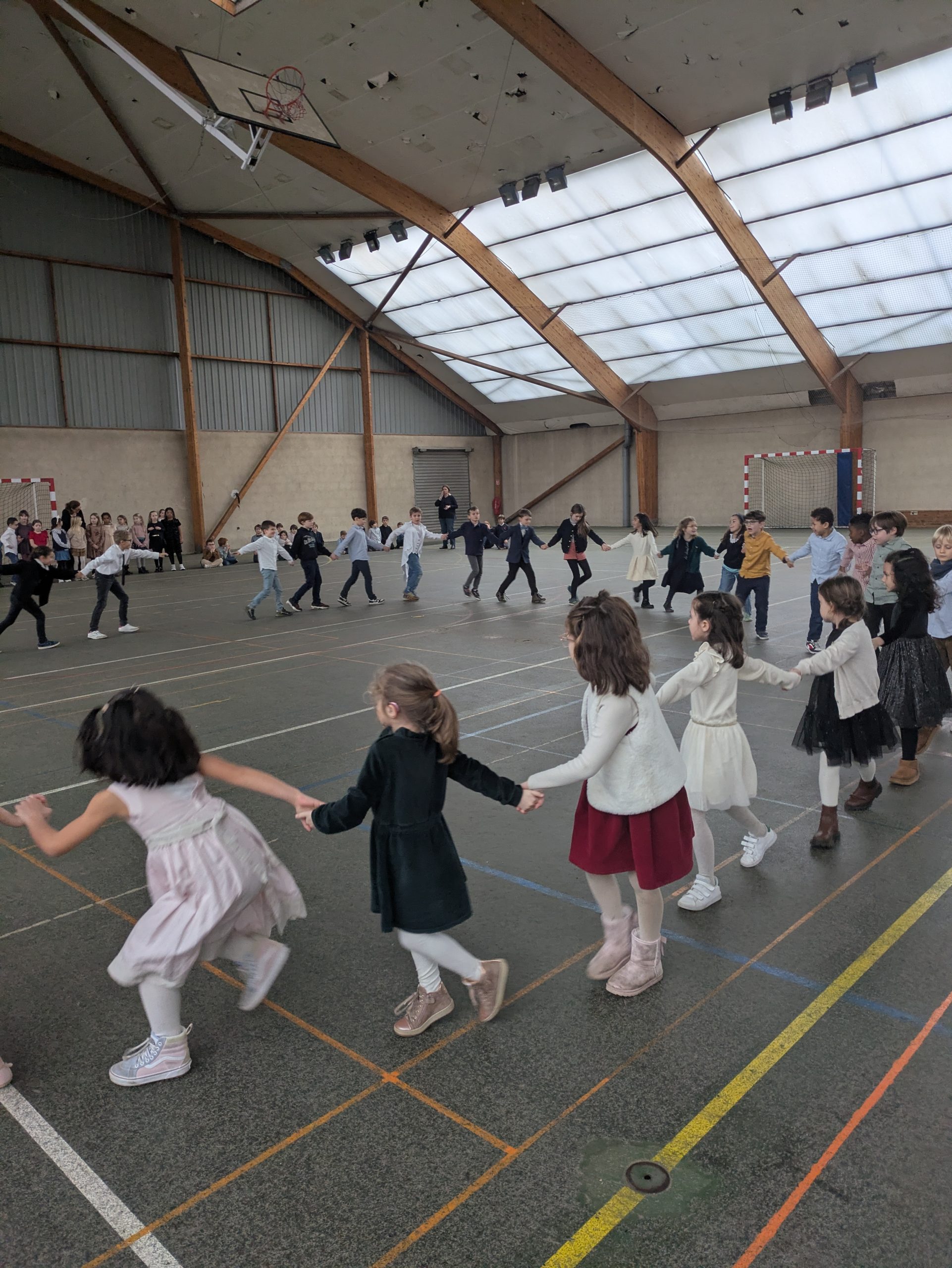 De septembre à janvier, les élèves de CE1 ont été initiés à différentes danses du monde avec Gabrielle et Marion, intervenantes en musique. Ce projet de musique devait se ponctuer par l’organisation d’un bal du monde.