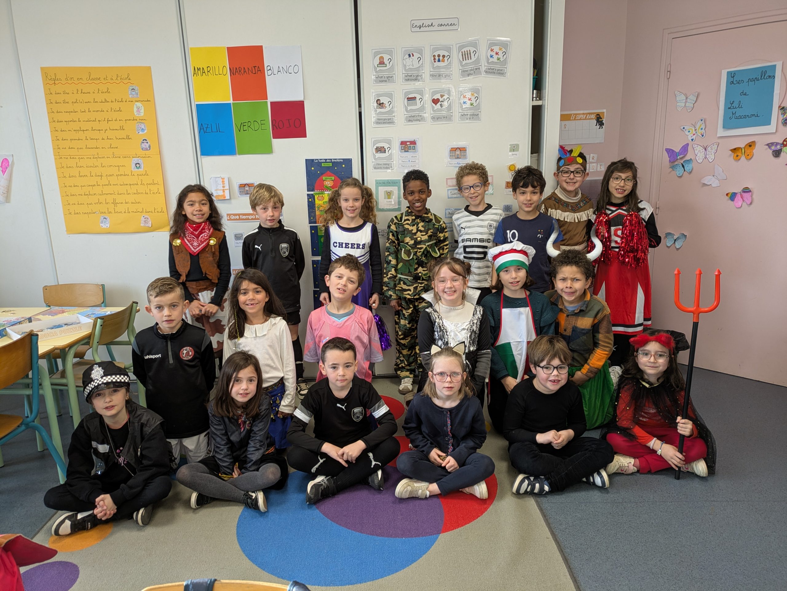 Le matin, nous sommes arrivés déguisés en classe.