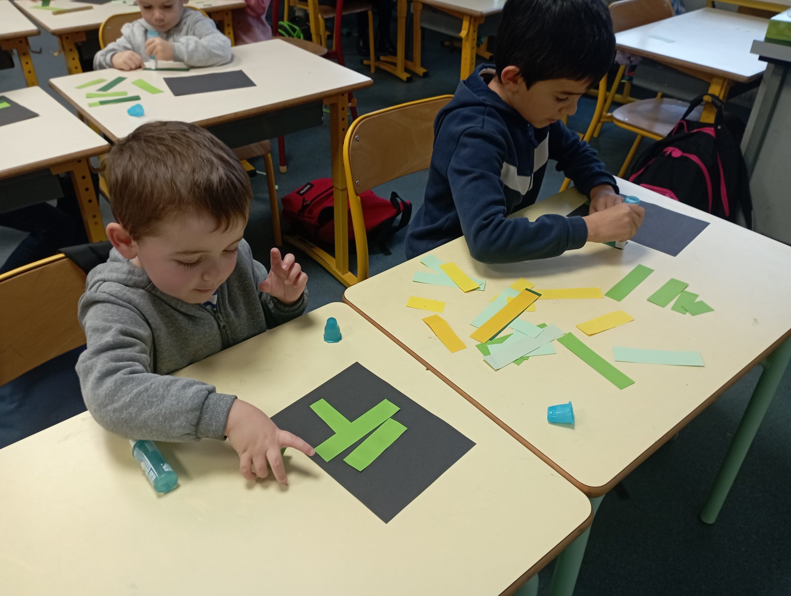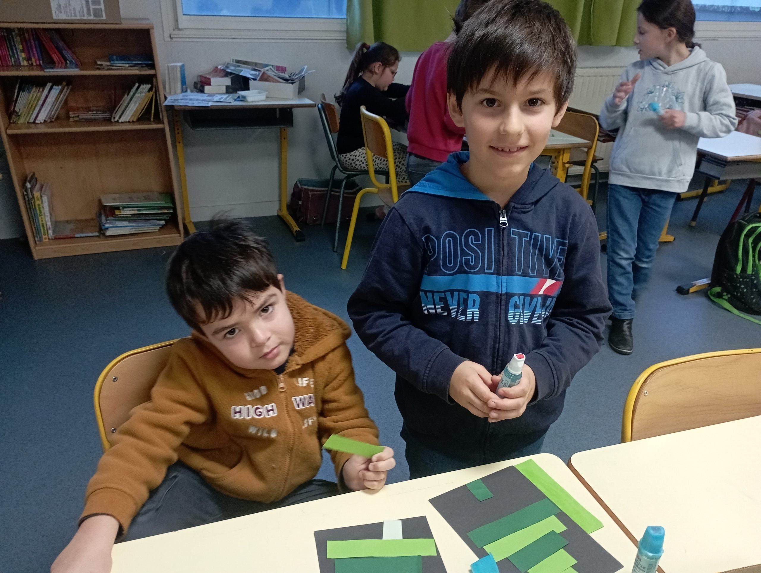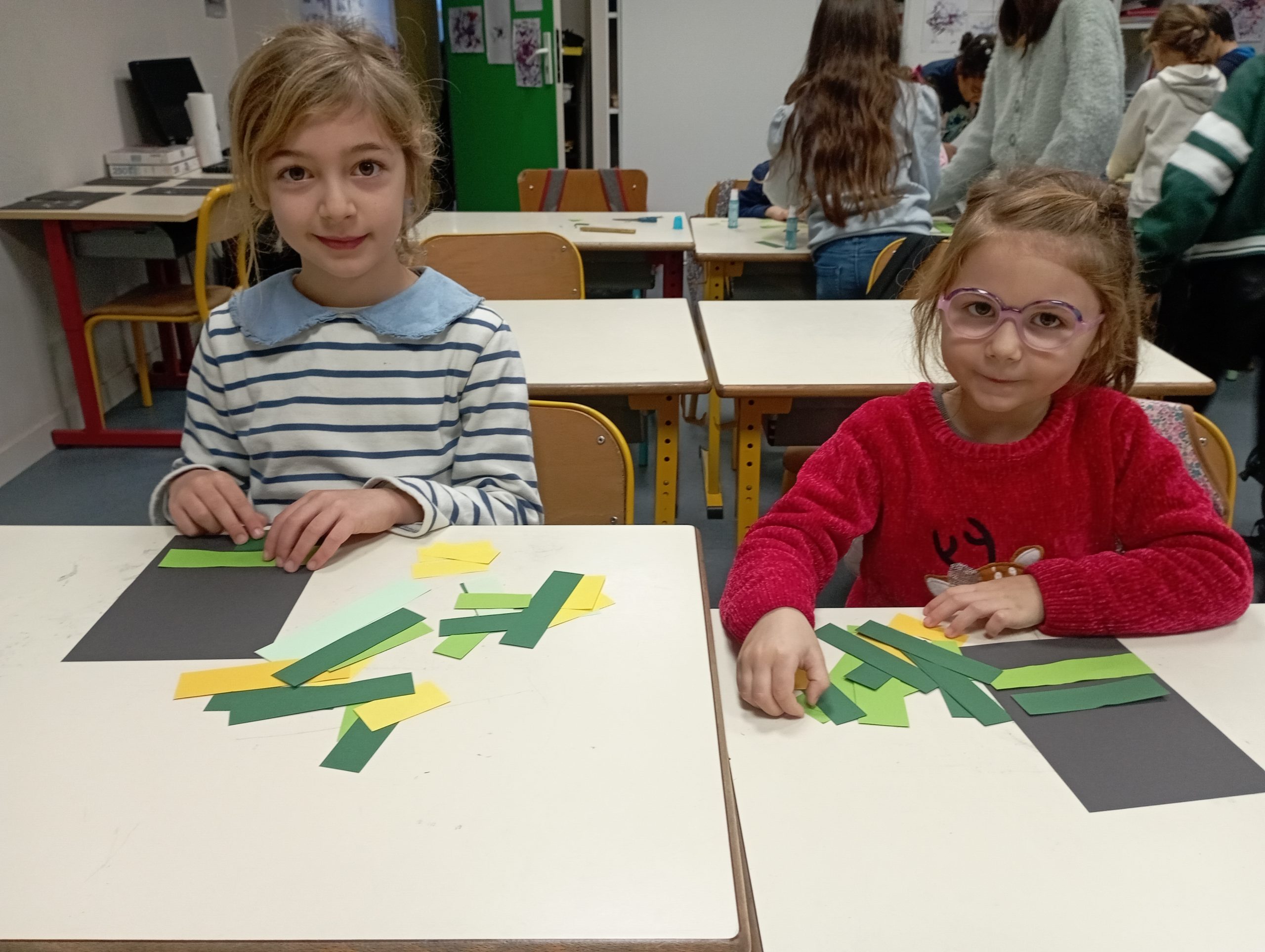 Atelier arts visuels (individuel) dont l’objectif est de créer une carte de Noël par la technique du collage.