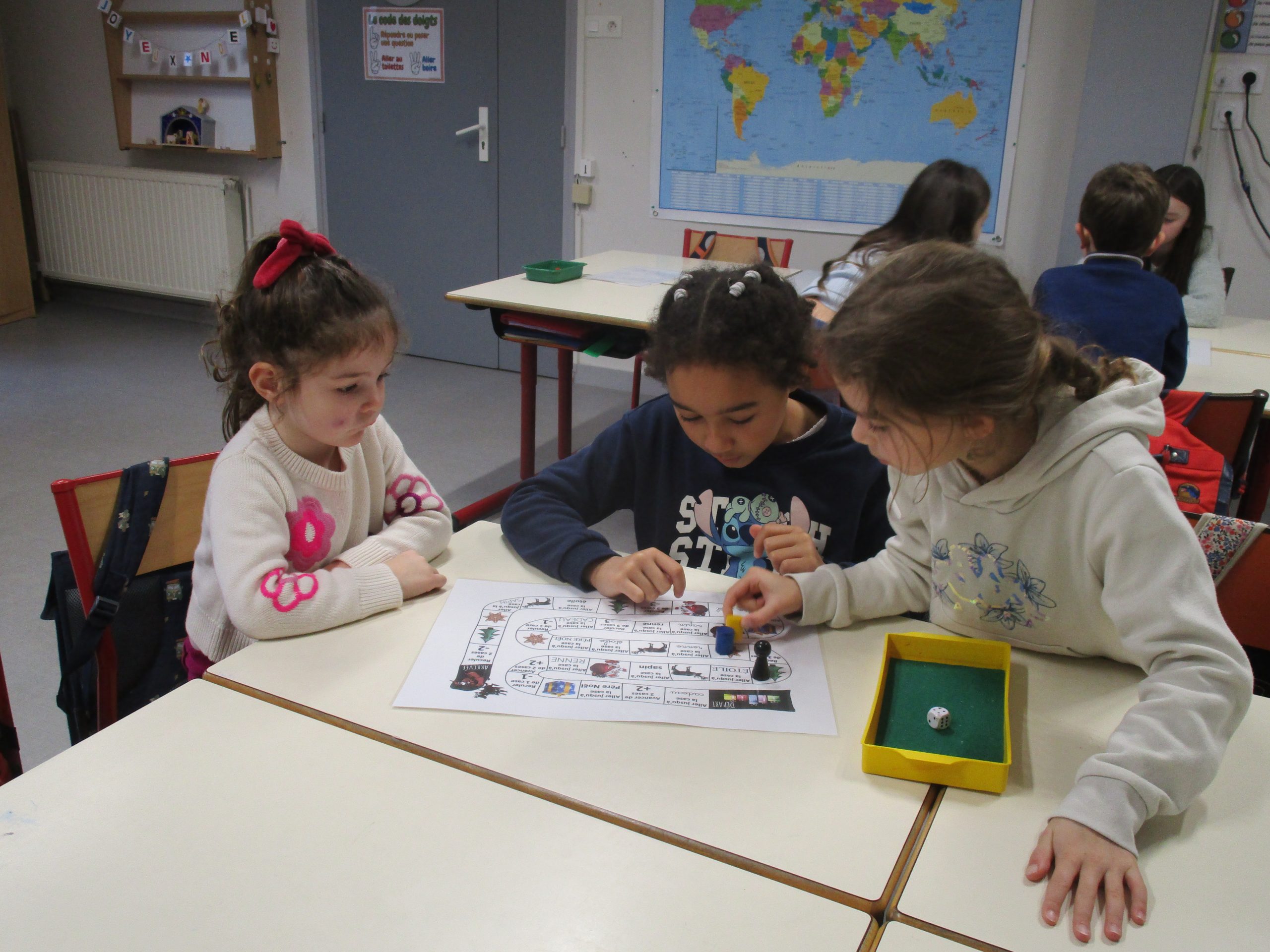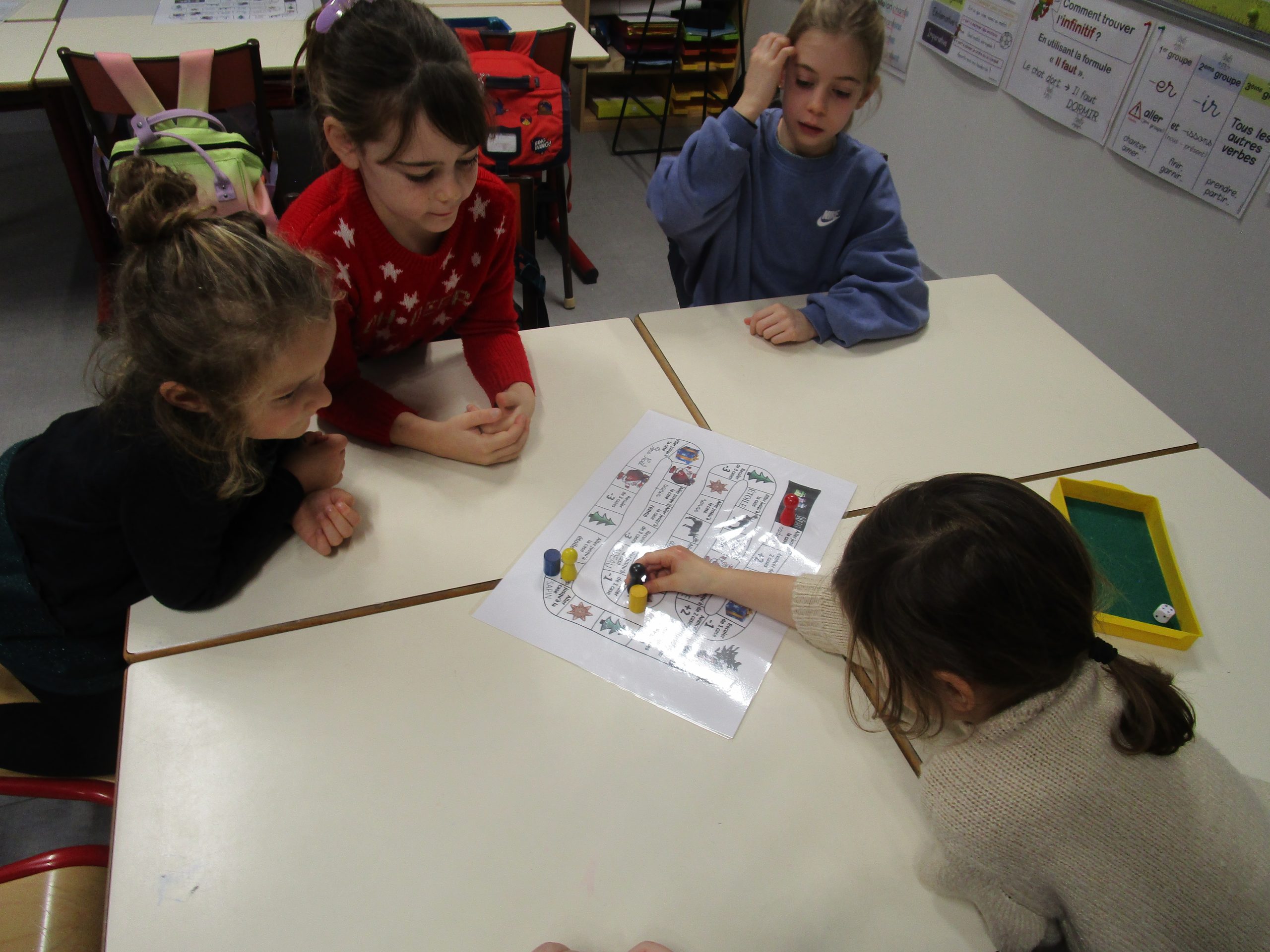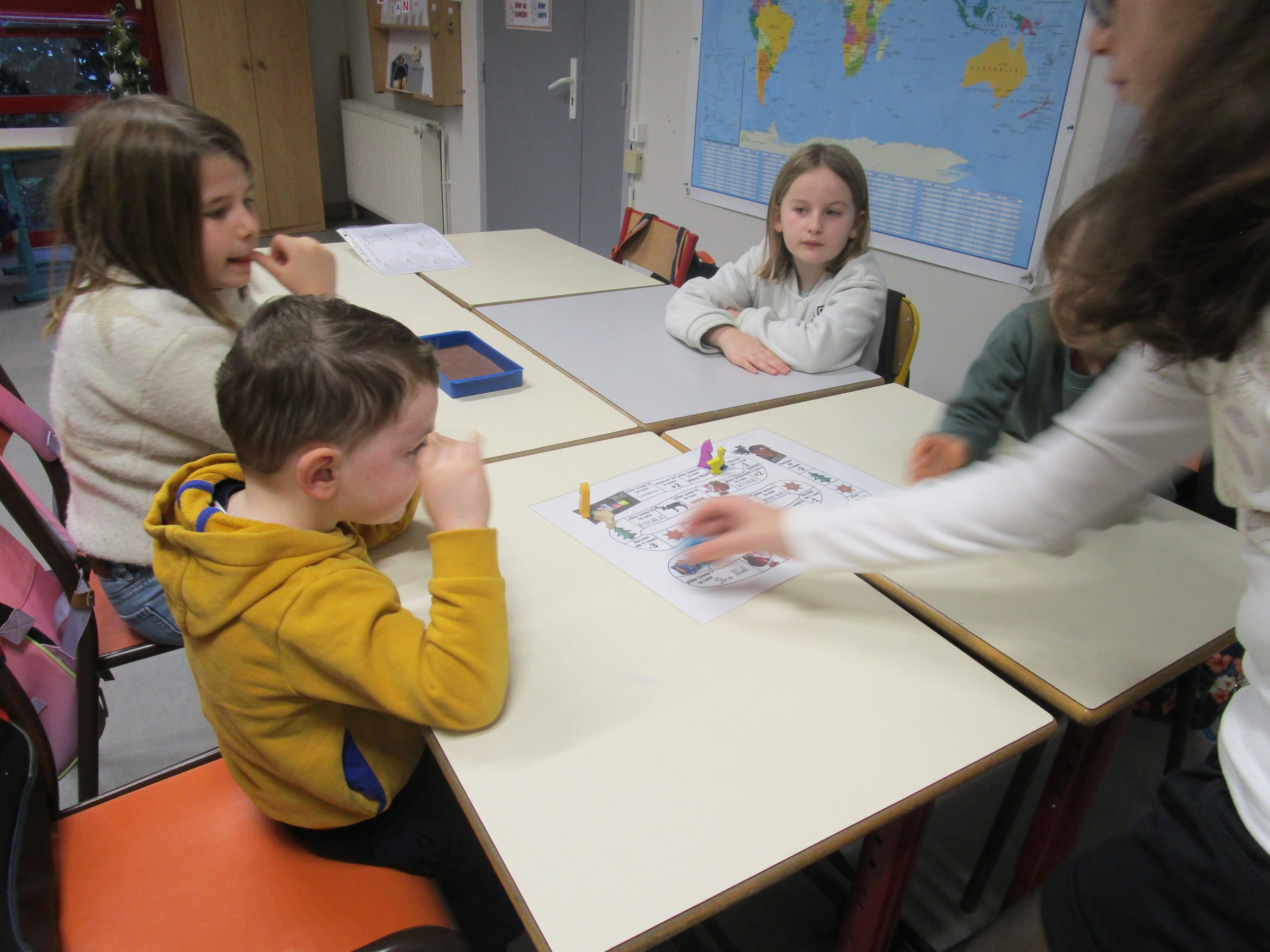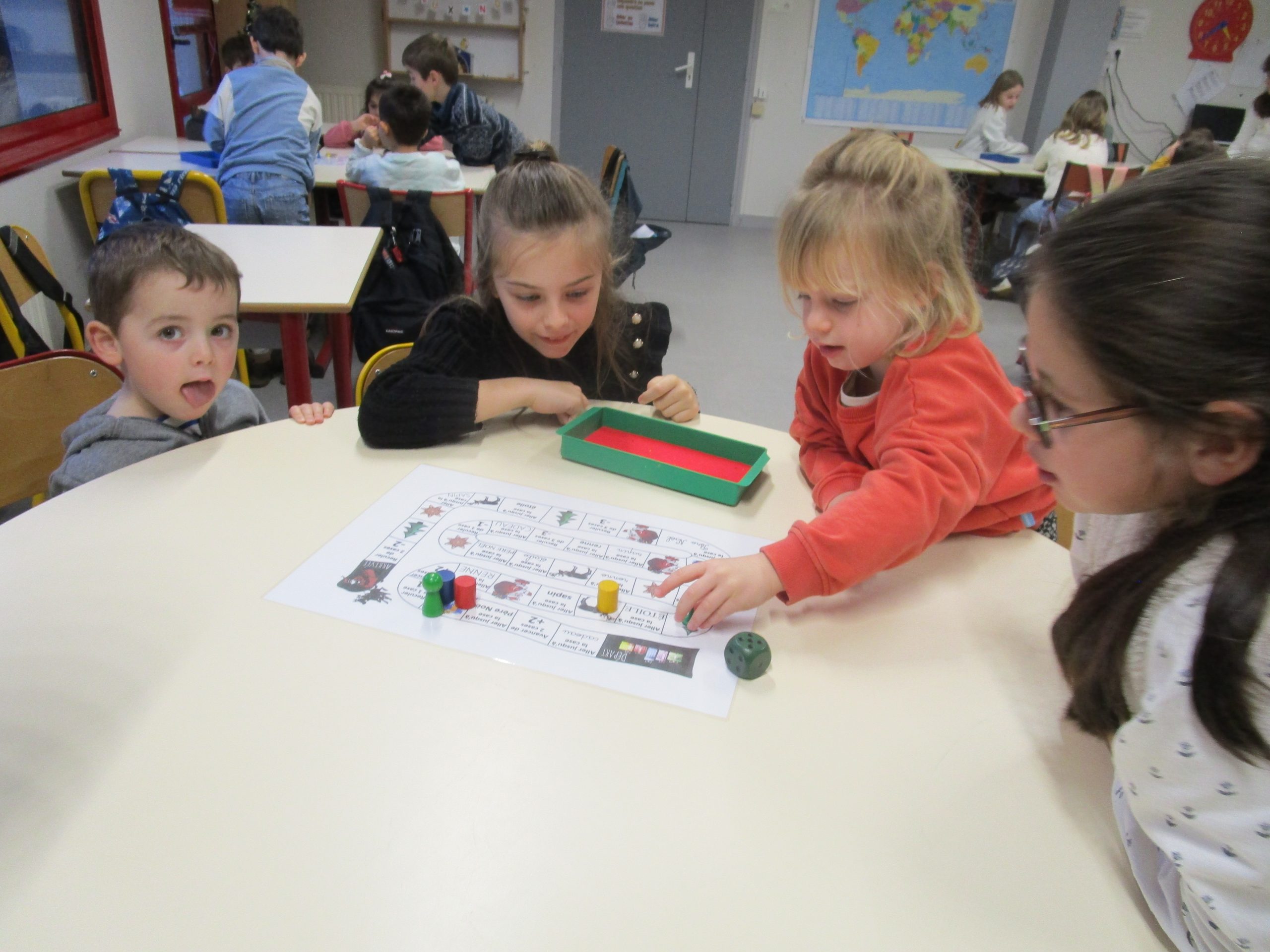 Nous retrouvons nos parrains et marraines de CE 2 non pas pour notre lecture hebdomadaire mais pour participer à une matinée commune sur le thème de Noël. Sept ateliers sont au programme. C’est en petits groupes, toujours sous la conduite d’un adulte, que nous déambulons dans leurs différents espaces.