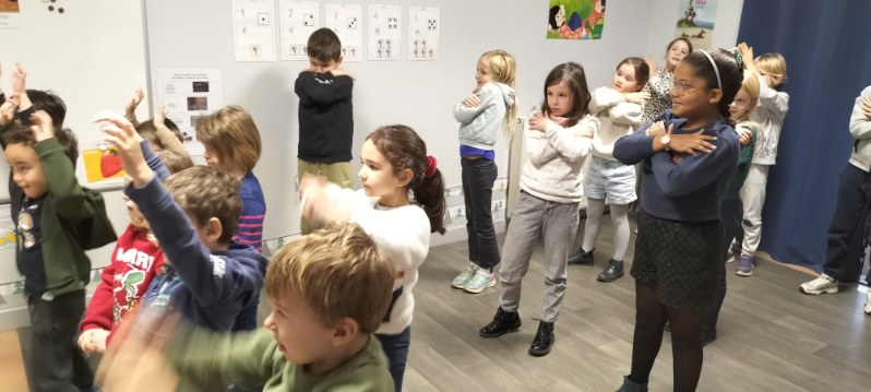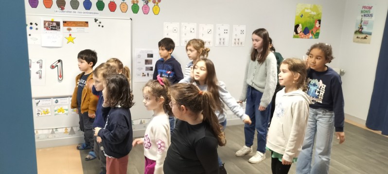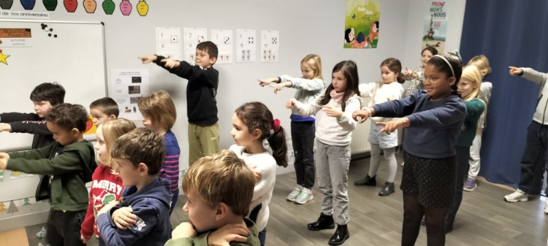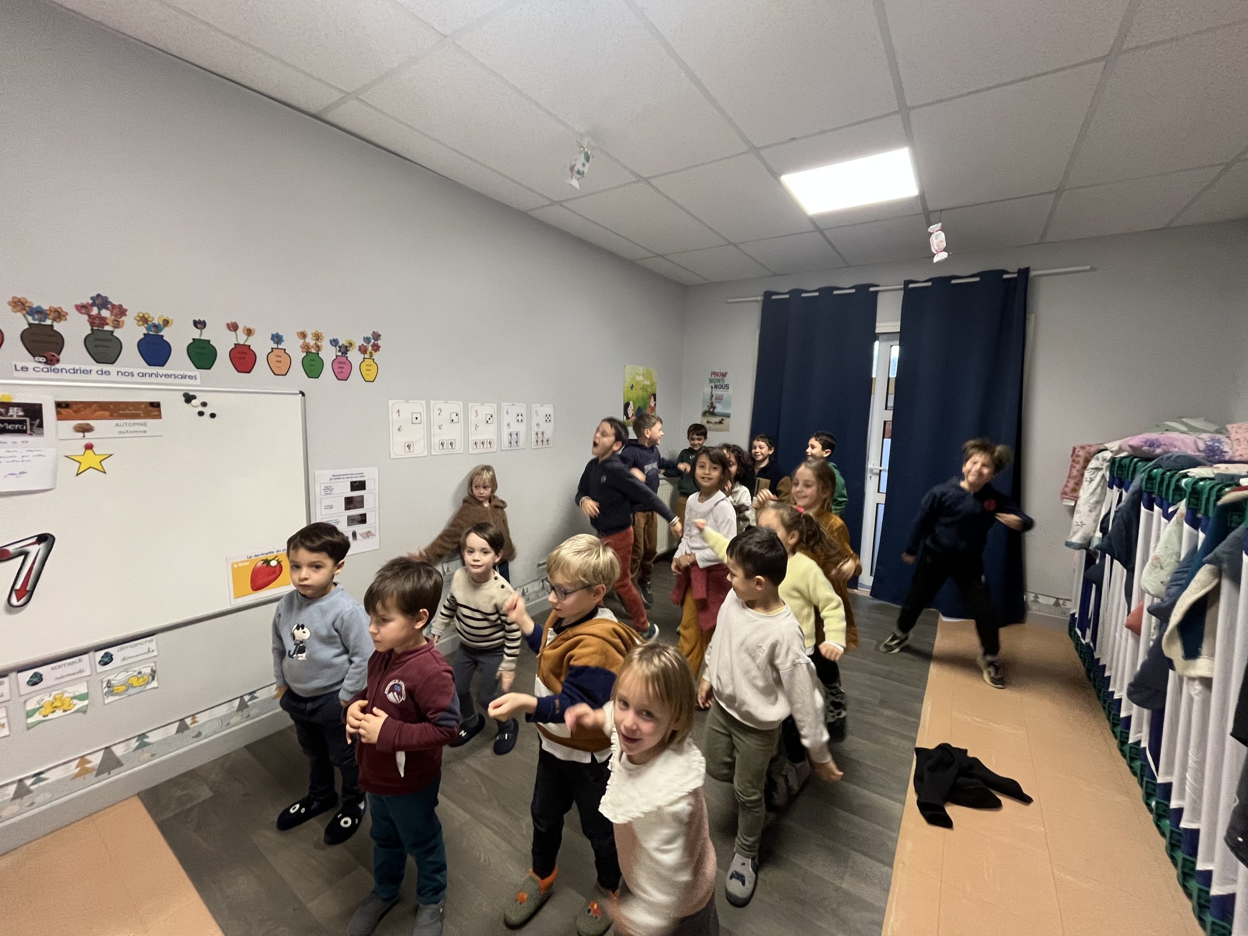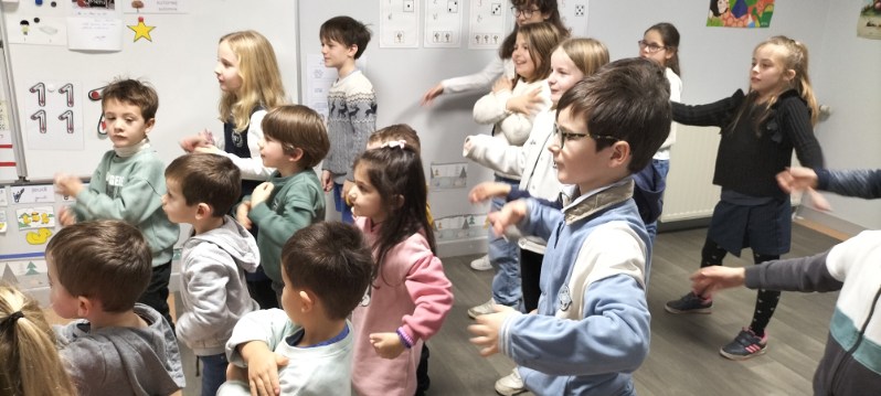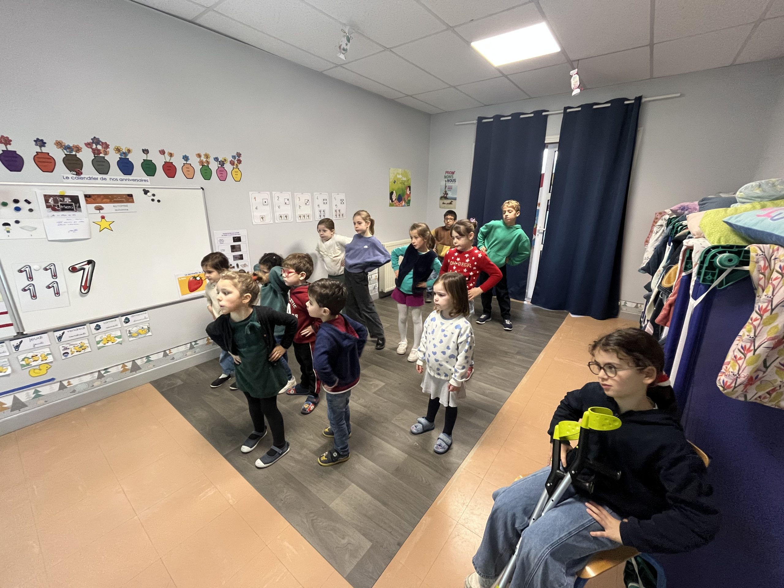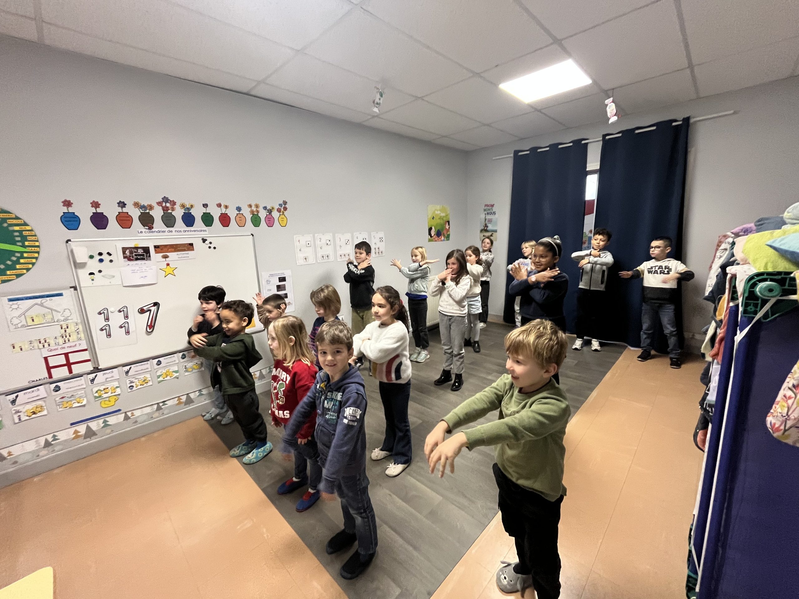 Atelier danse dont l’objectif est d’imiter une chorégraphie sur la chanson « All I want for Christmas ».