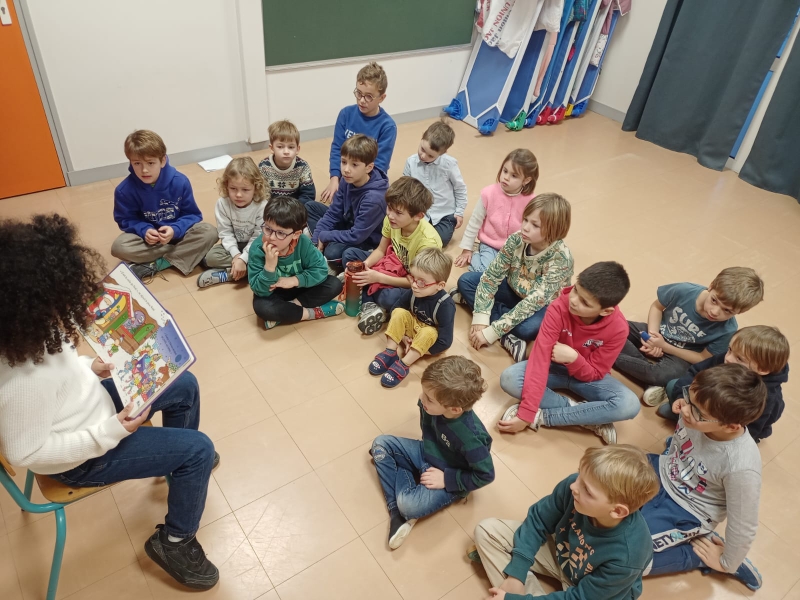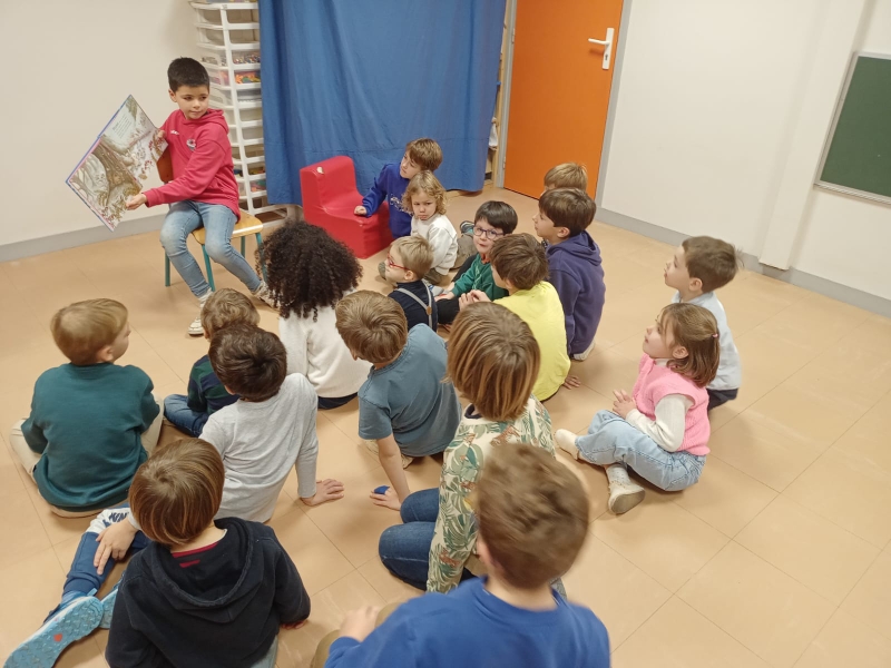 Atelier lecture dont l’objectif est d’écouter un conte lu par un enfant de CE2.