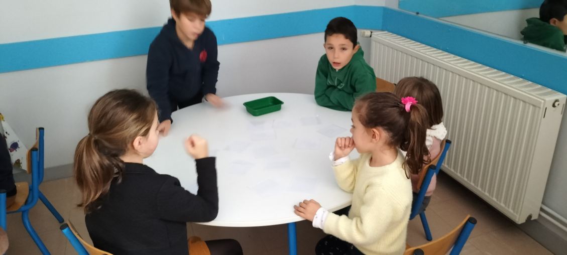 Atelier langage oral dont l’objectif est de participer à un jeu de memory à thème.
