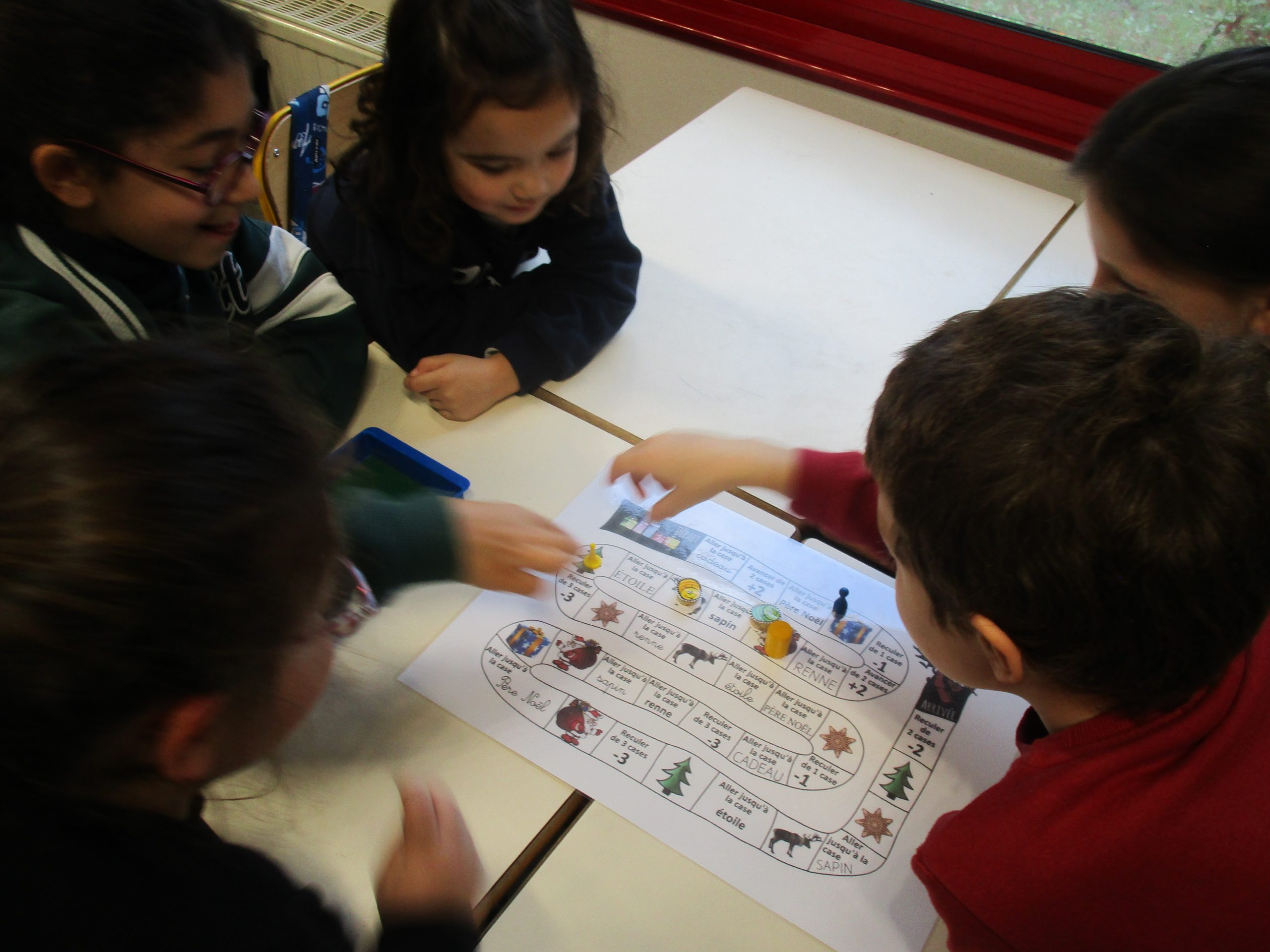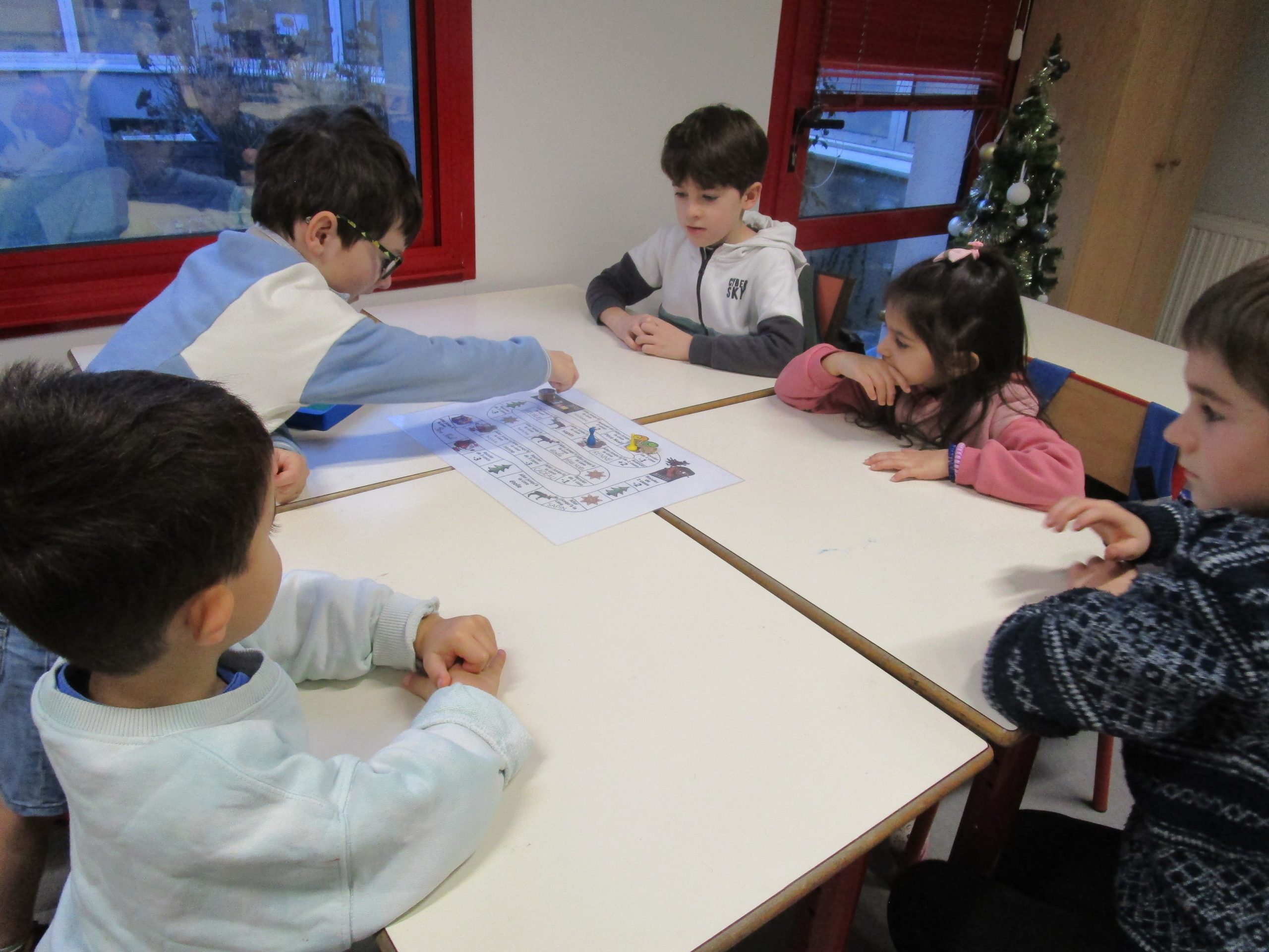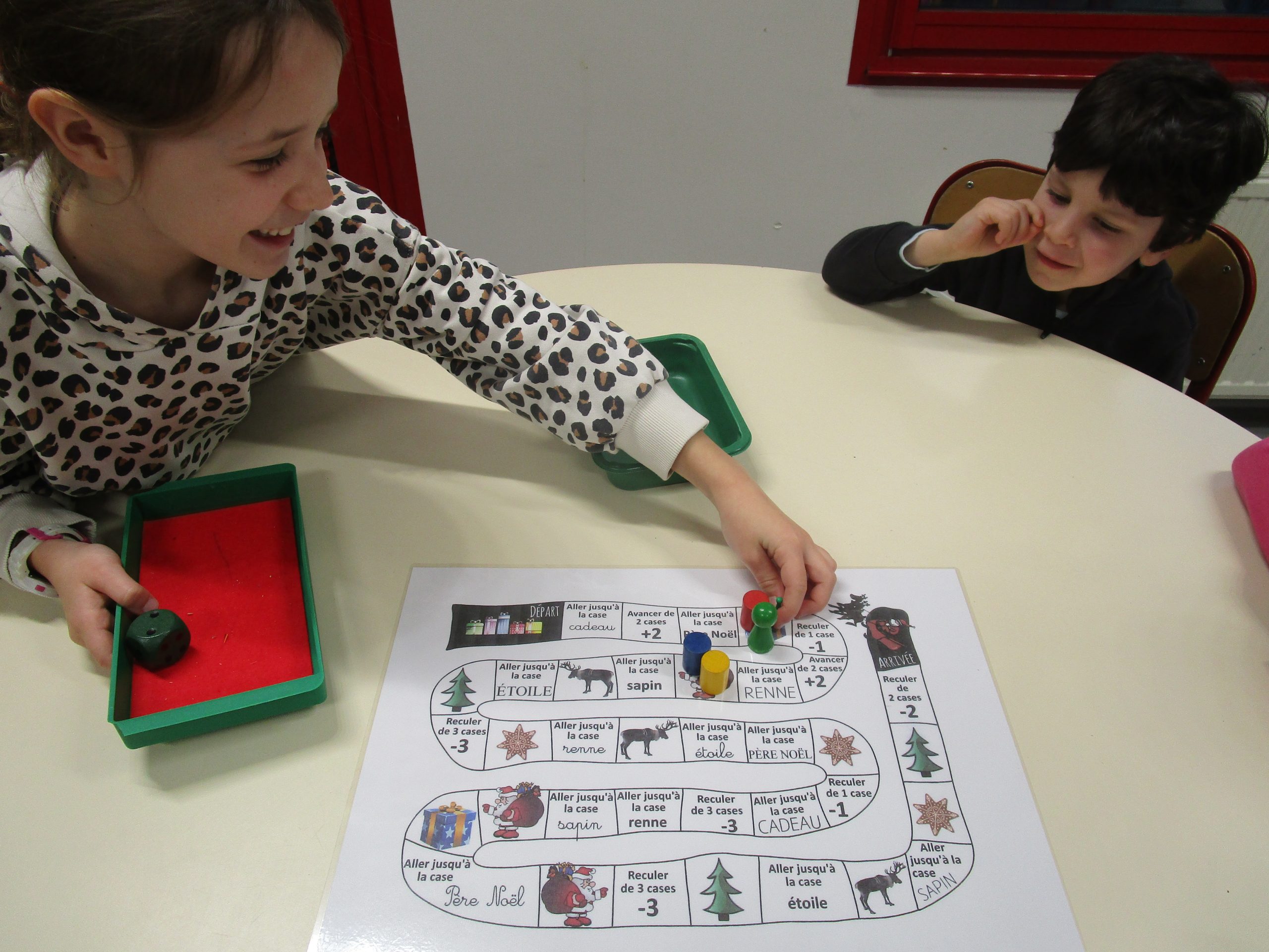 Atelier jeu de société dont l’objectif est de participer au jeu de l’oie « Le traîneau du Père Noël ».