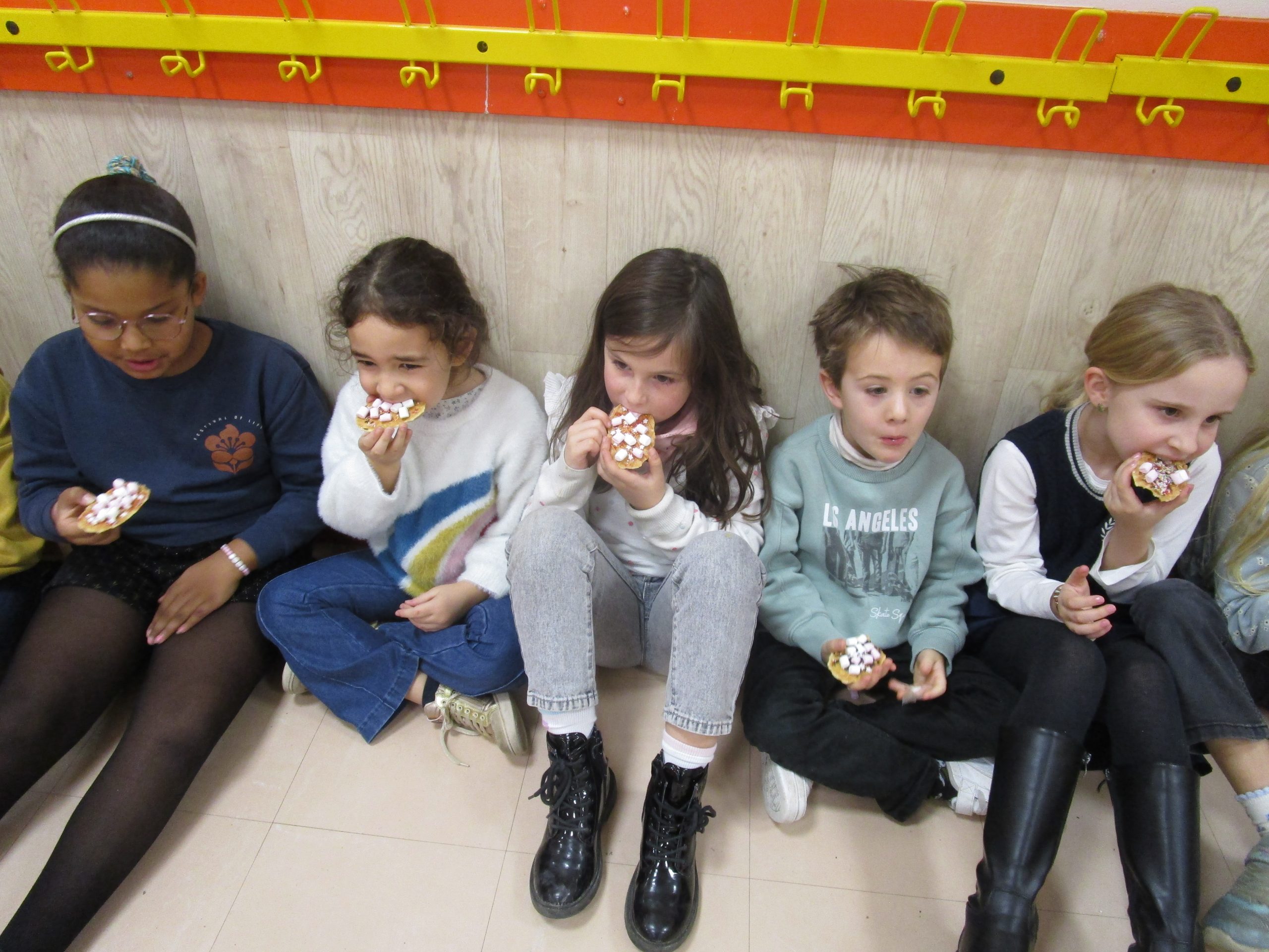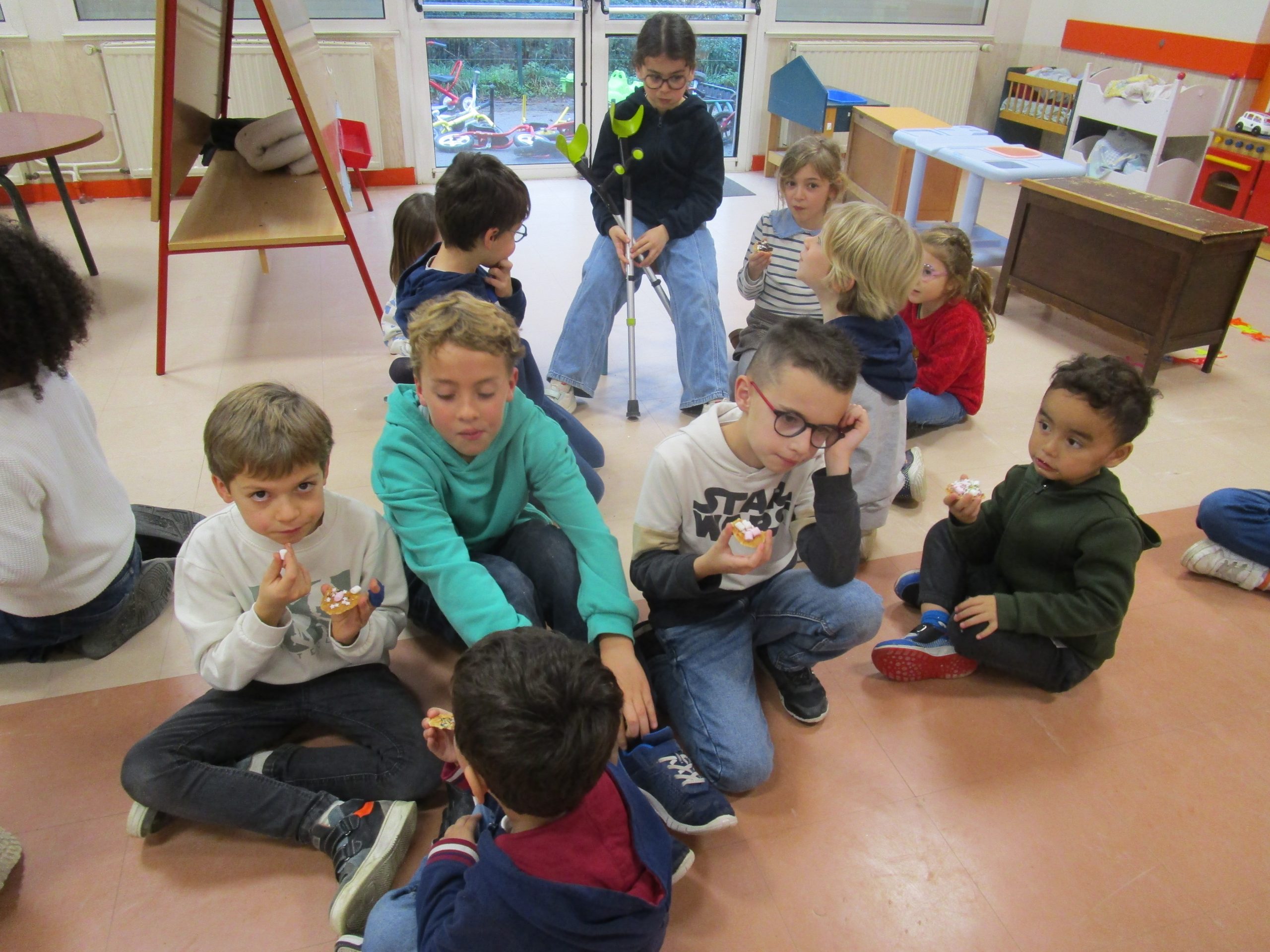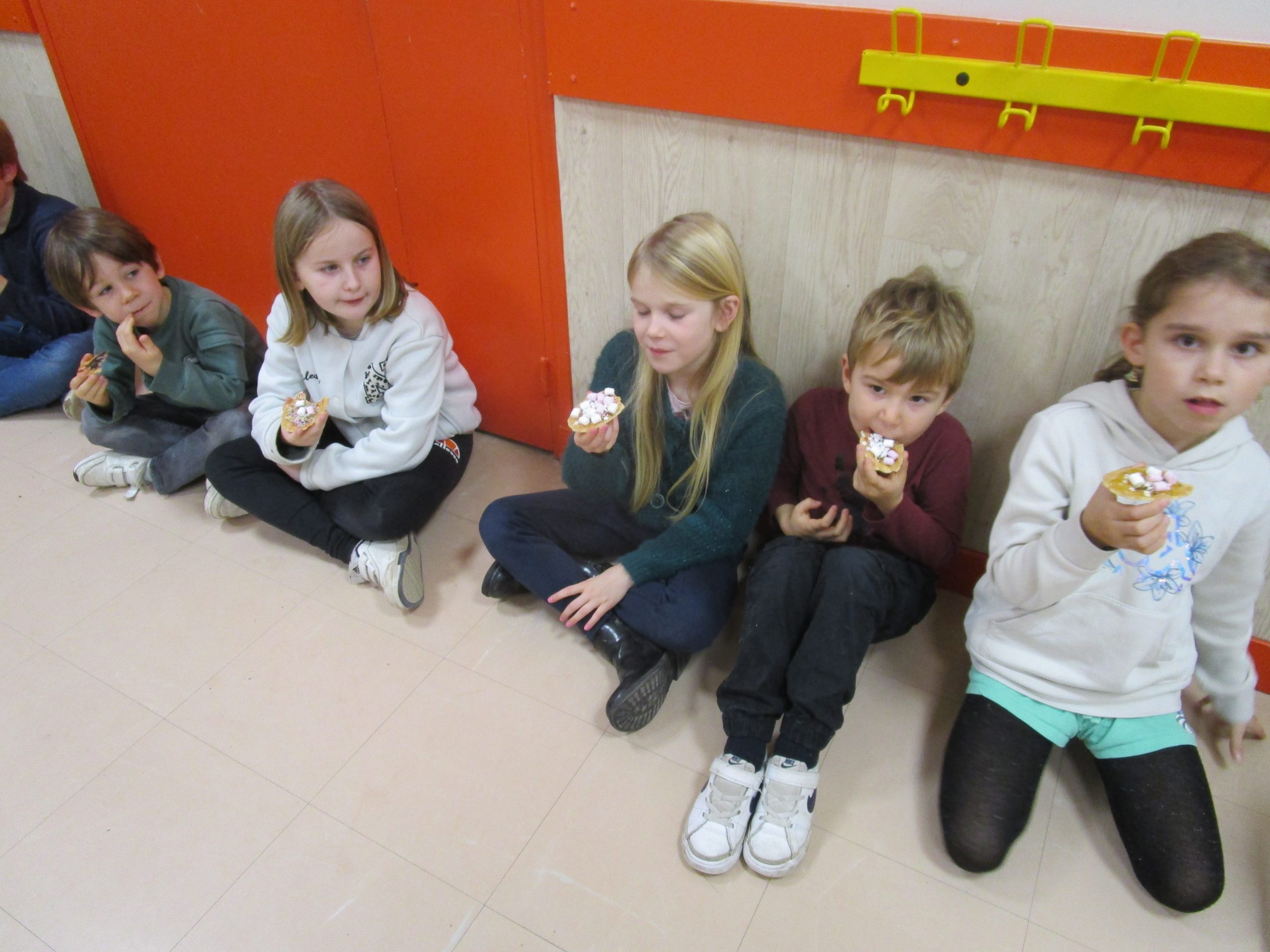 L’après-midi, les 5 classes se sont retrouvées pour déguster les boules préparées à l’atelier cuisine. Et tout le monde semble s’être bien régalé !!!