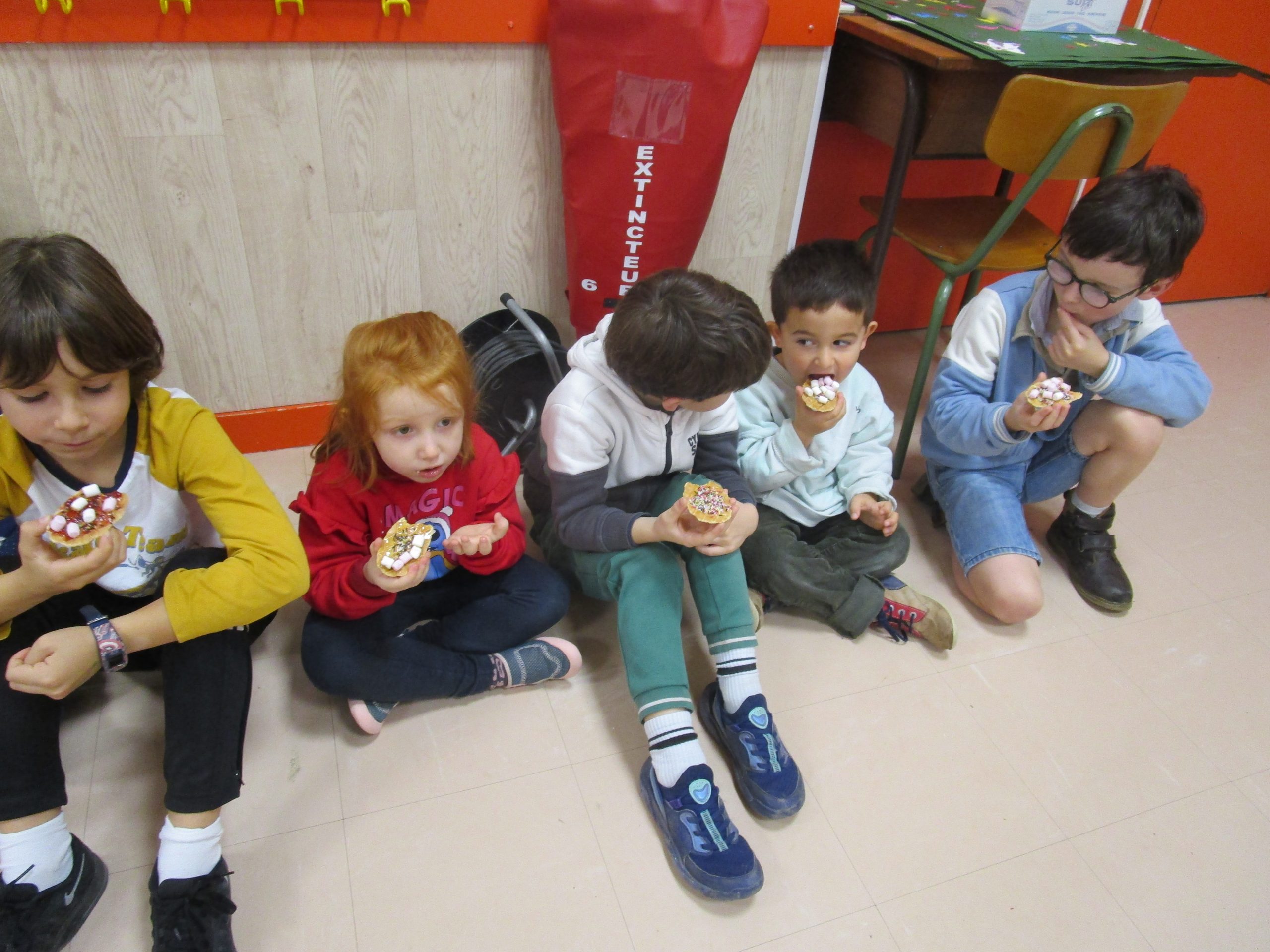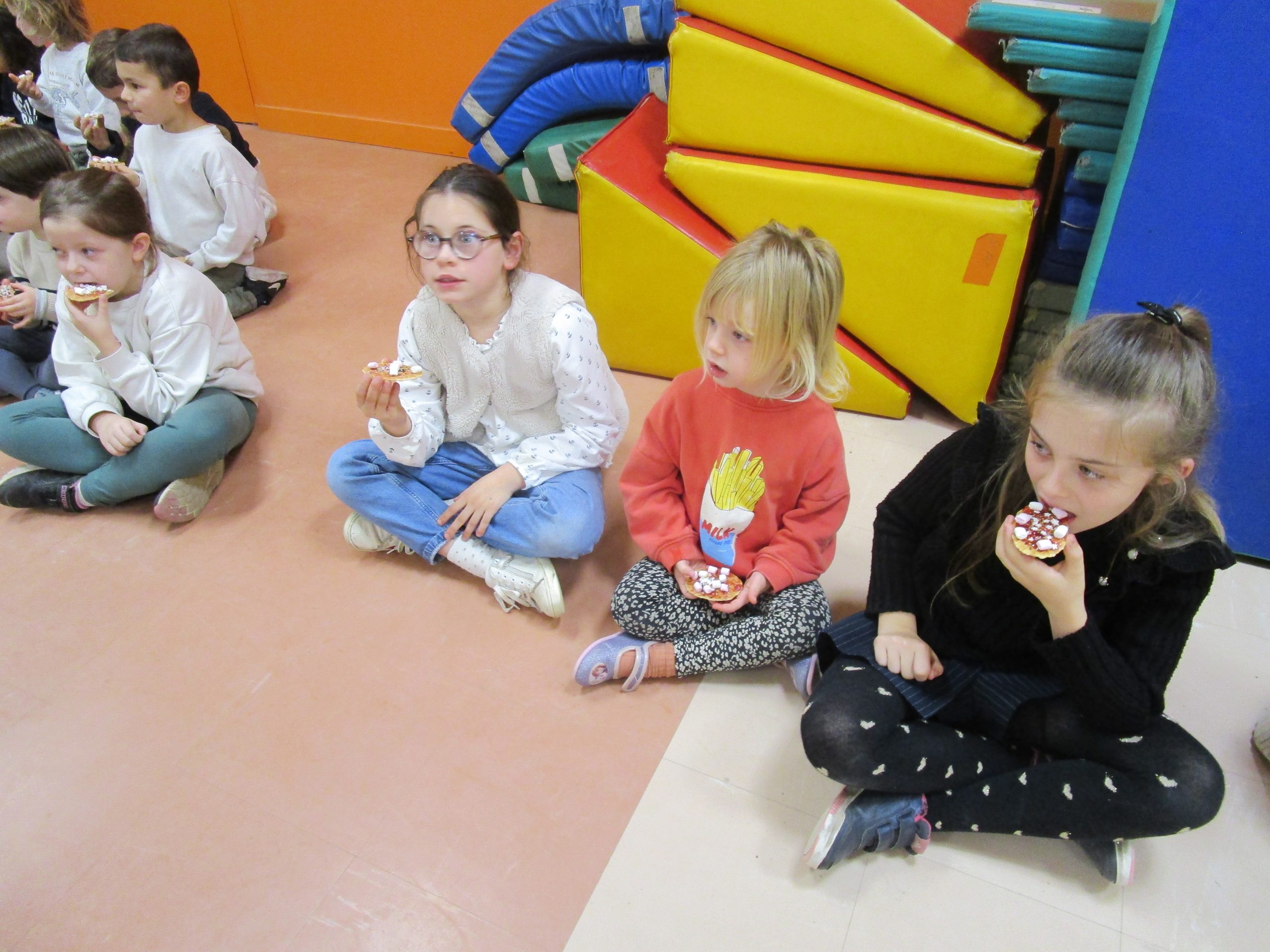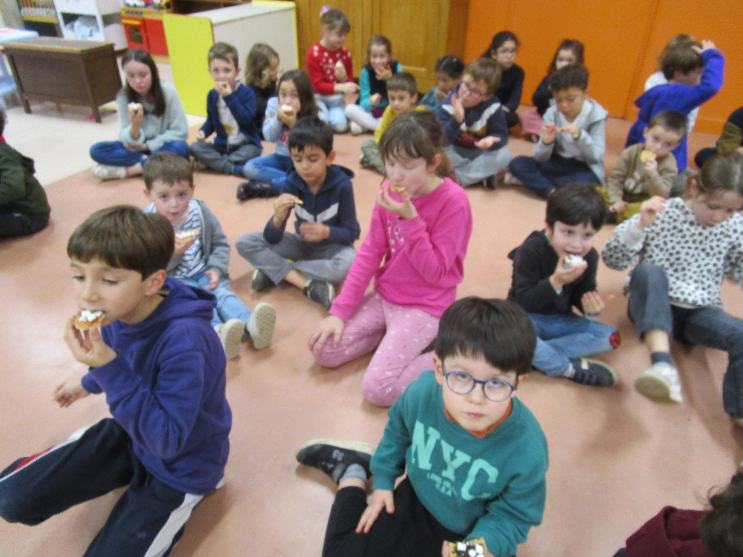 L’après-midi, les 5 classes se sont retrouvées pour déguster les boules préparées à l’atelier cuisine. Et tout le monde semble s’être bien régalé !!!
