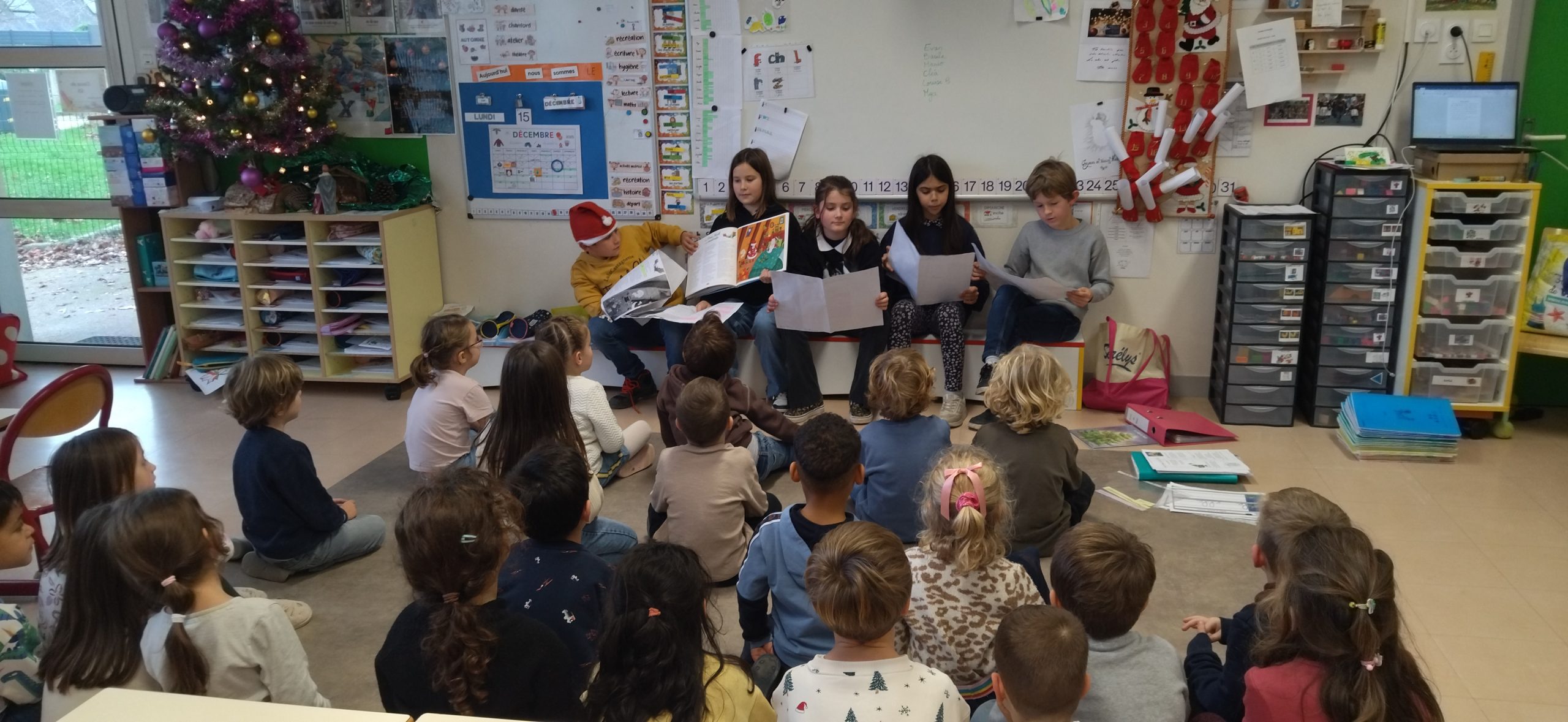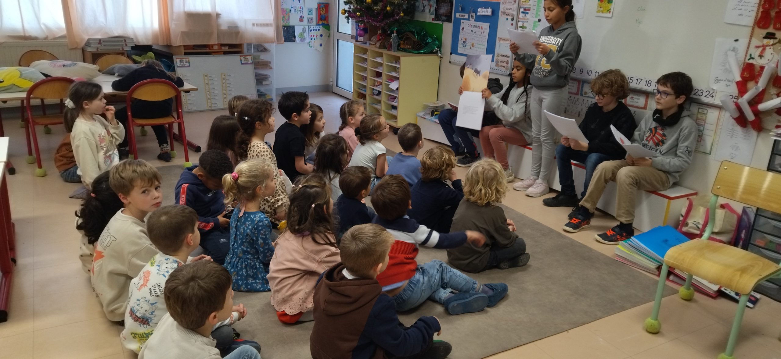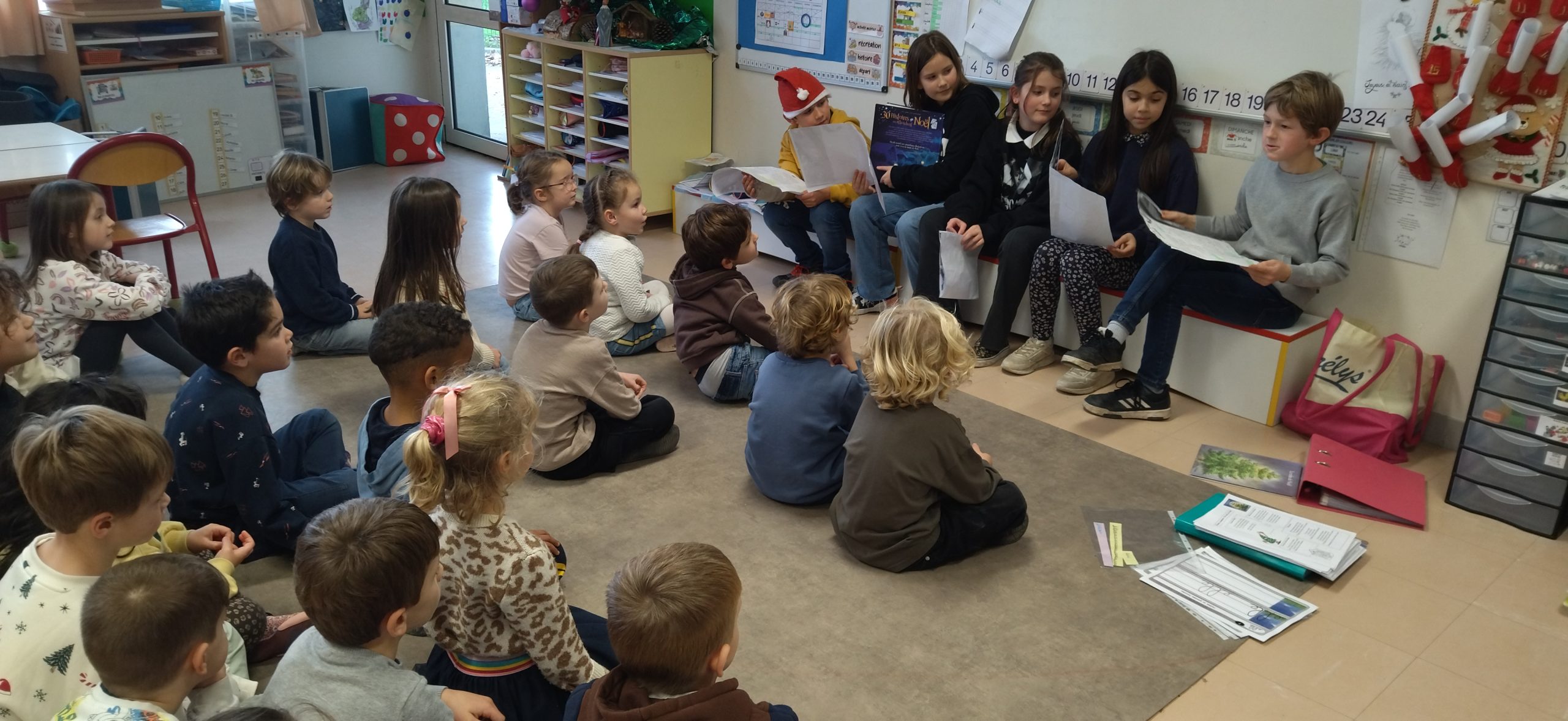 Lundi 8 décembre, nous avons lancé le parrainage GS/CM1. L’objectif de ce parrainage est de créer une entraide entre les GS et les CM1 et qu’ils soient attentifs au bien-être des uns et des autres sur la cour de récréation sur le temps du midi. Nous souhaitons également que ce lien perdure l’année prochaine pour que les GS (futurs CP) se sentent soutenus et portés par les plus grands de l’école CM1 (futurs CM2).