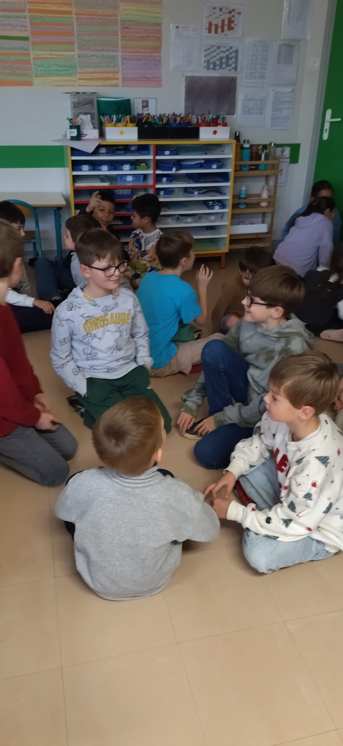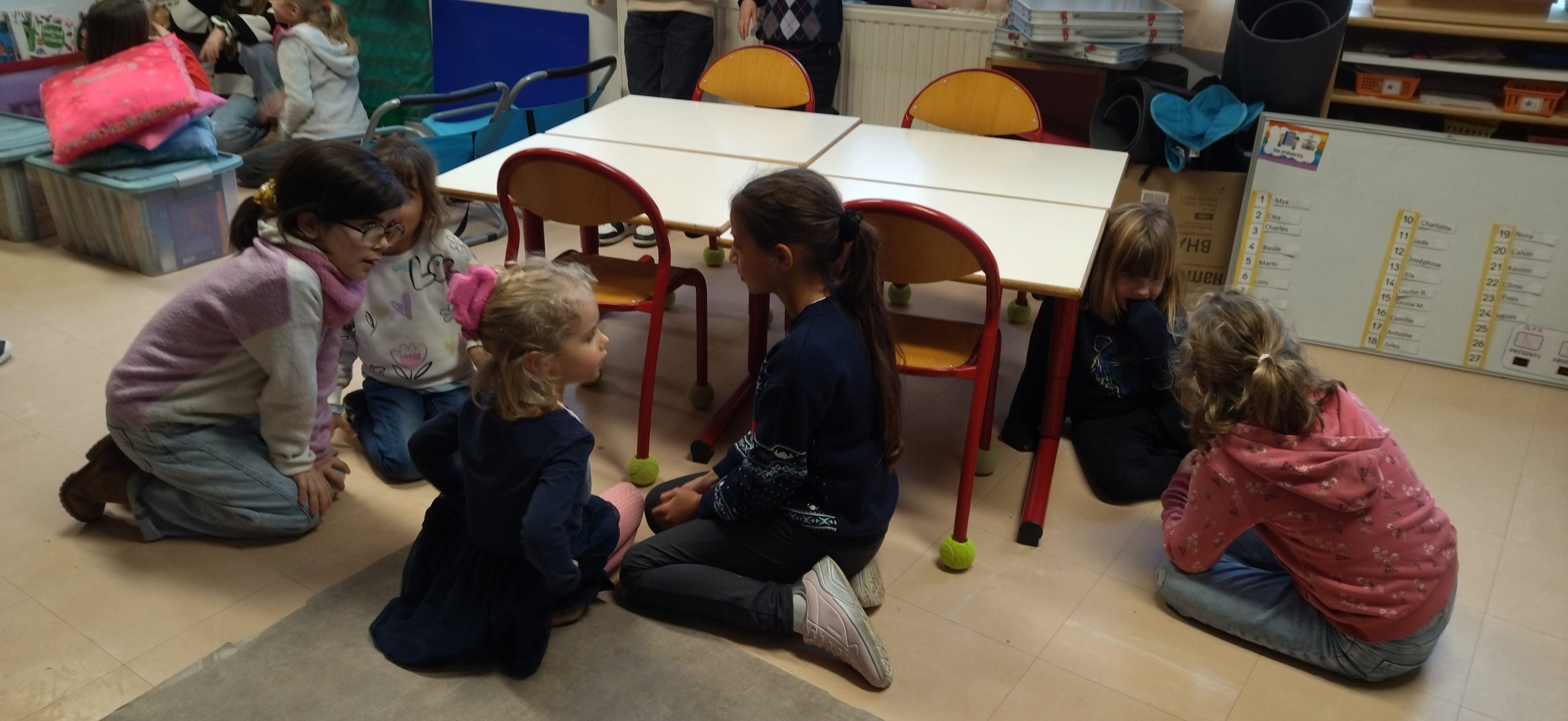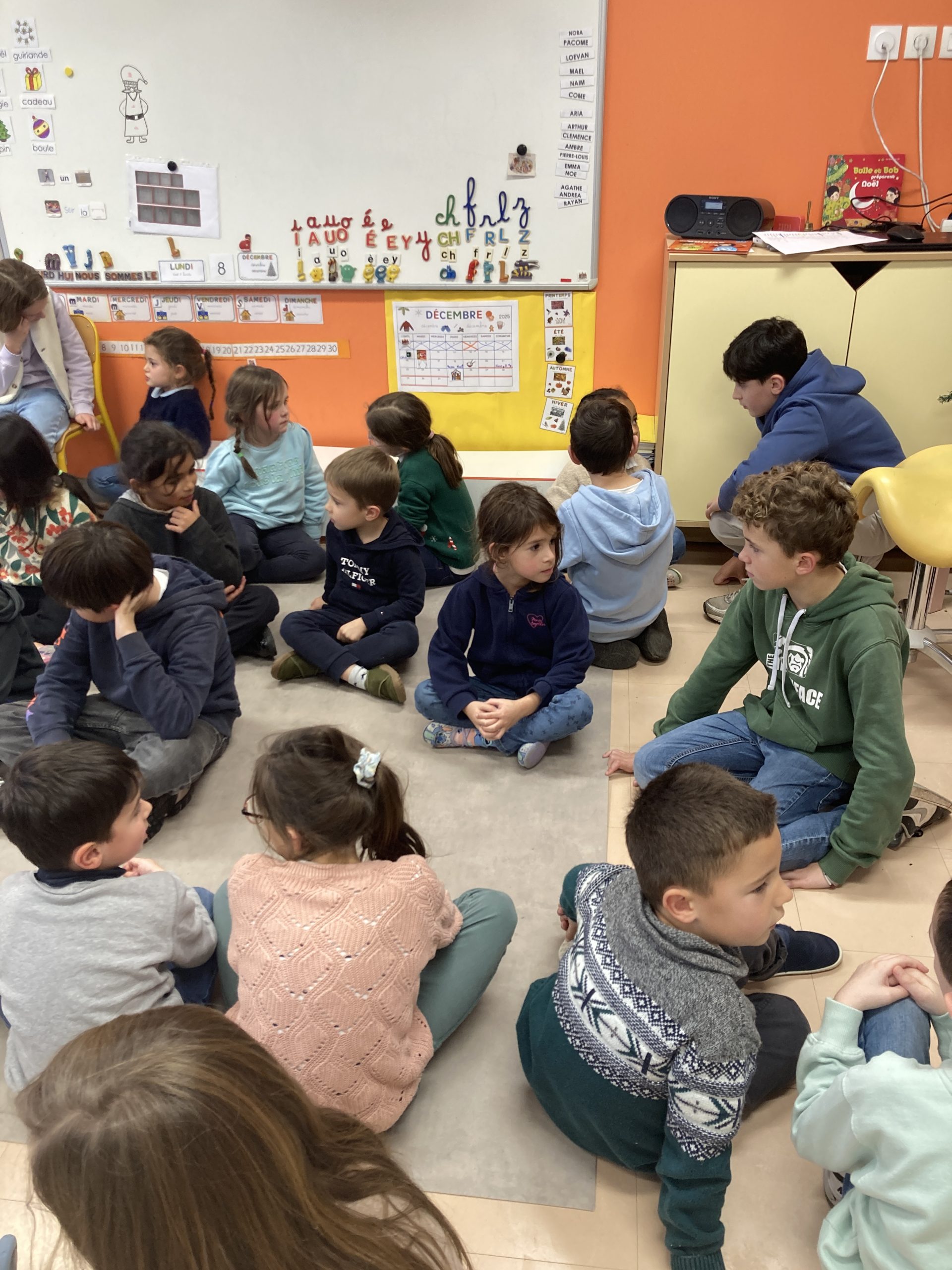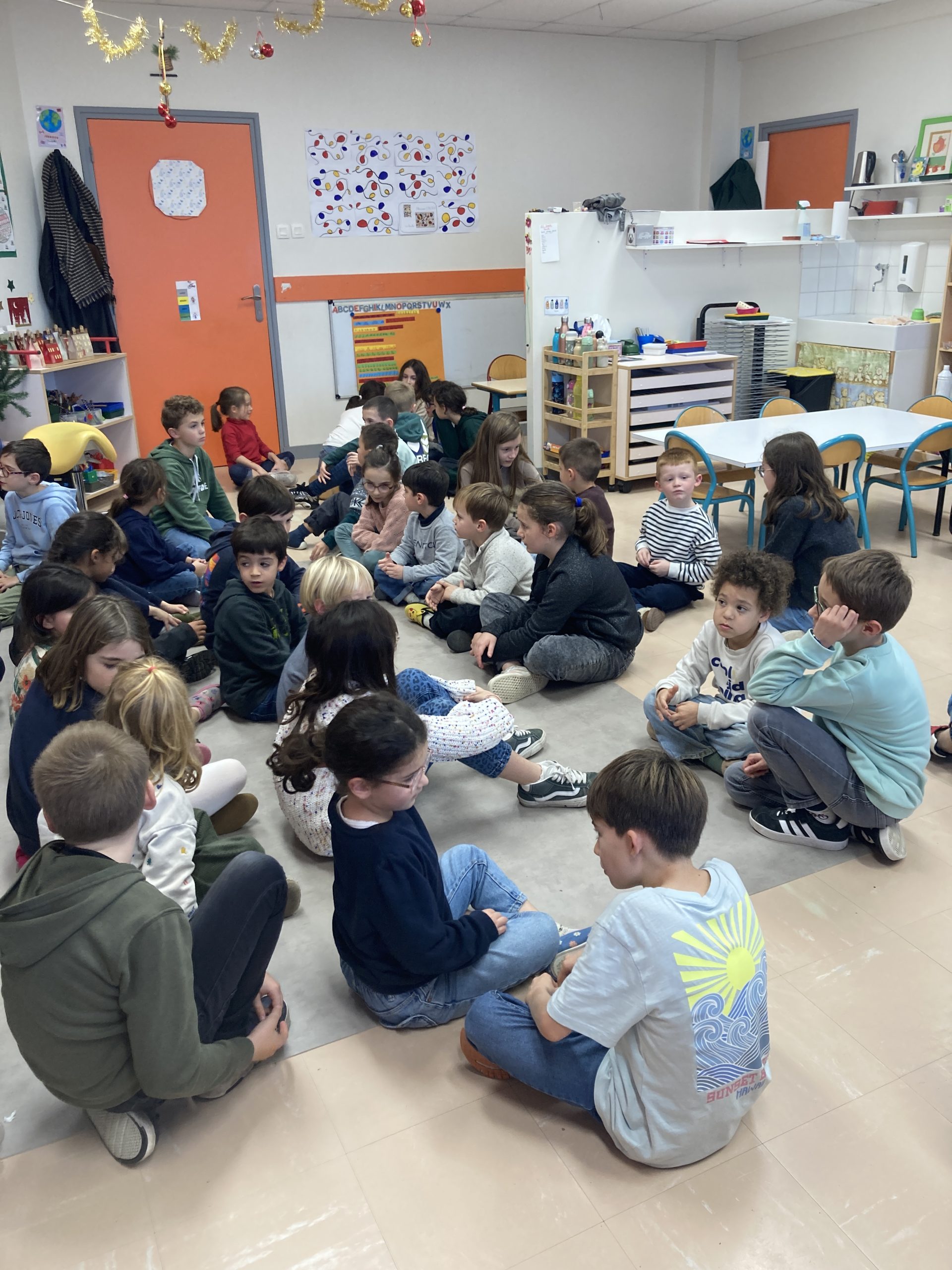 Lundi 8 décembre, nous avons lancé le parrainage GS/CM1. L’objectif de ce parrainage est de créer une entraide entre les GS et les CM1 et qu’ils soient attentifs au bien-être des uns et des autres sur la cour de récréation sur le temps du midi. Nous souhaitons également que ce lien perdure l’année prochaine pour que les GS (futurs CP) se sentent soutenus et portés par les plus grands de l’école CM1 (futurs CM2).