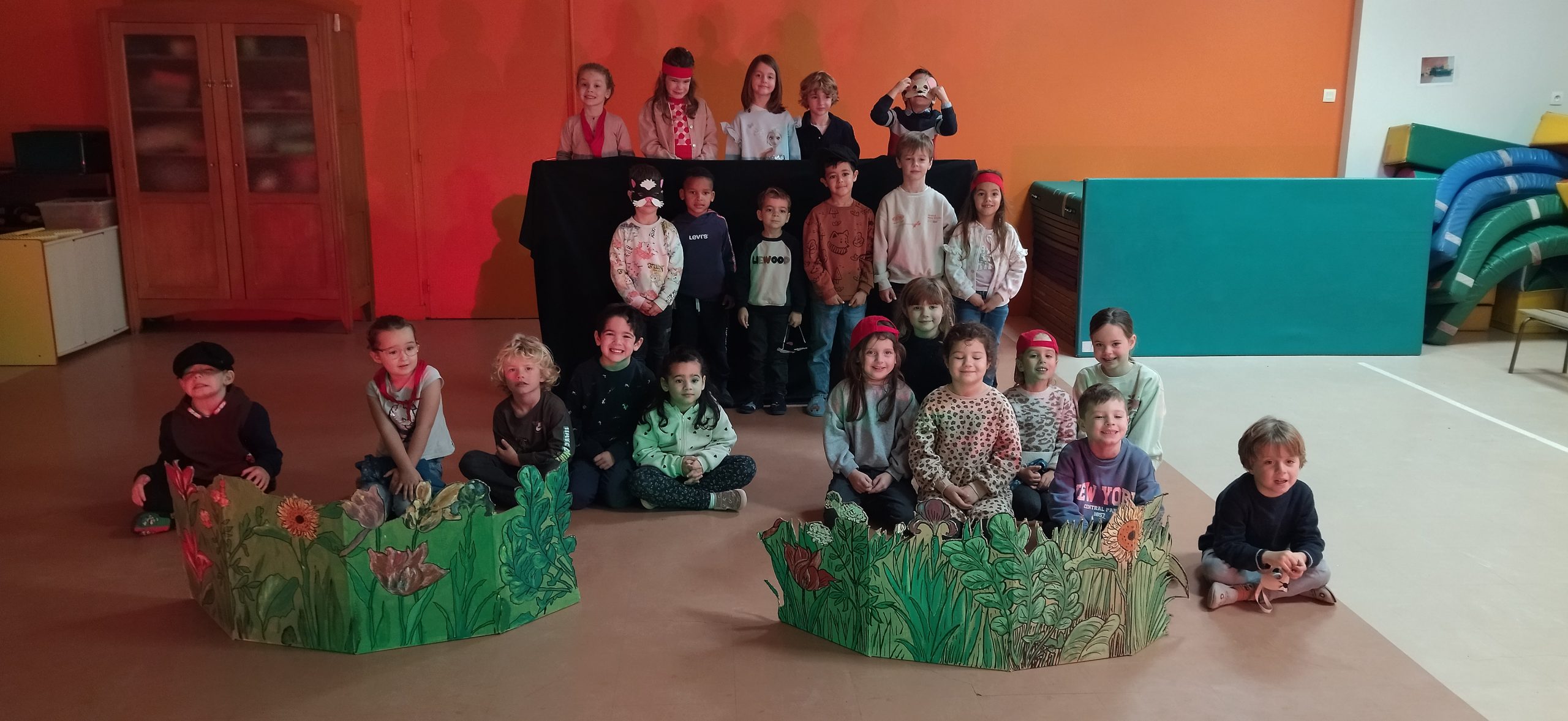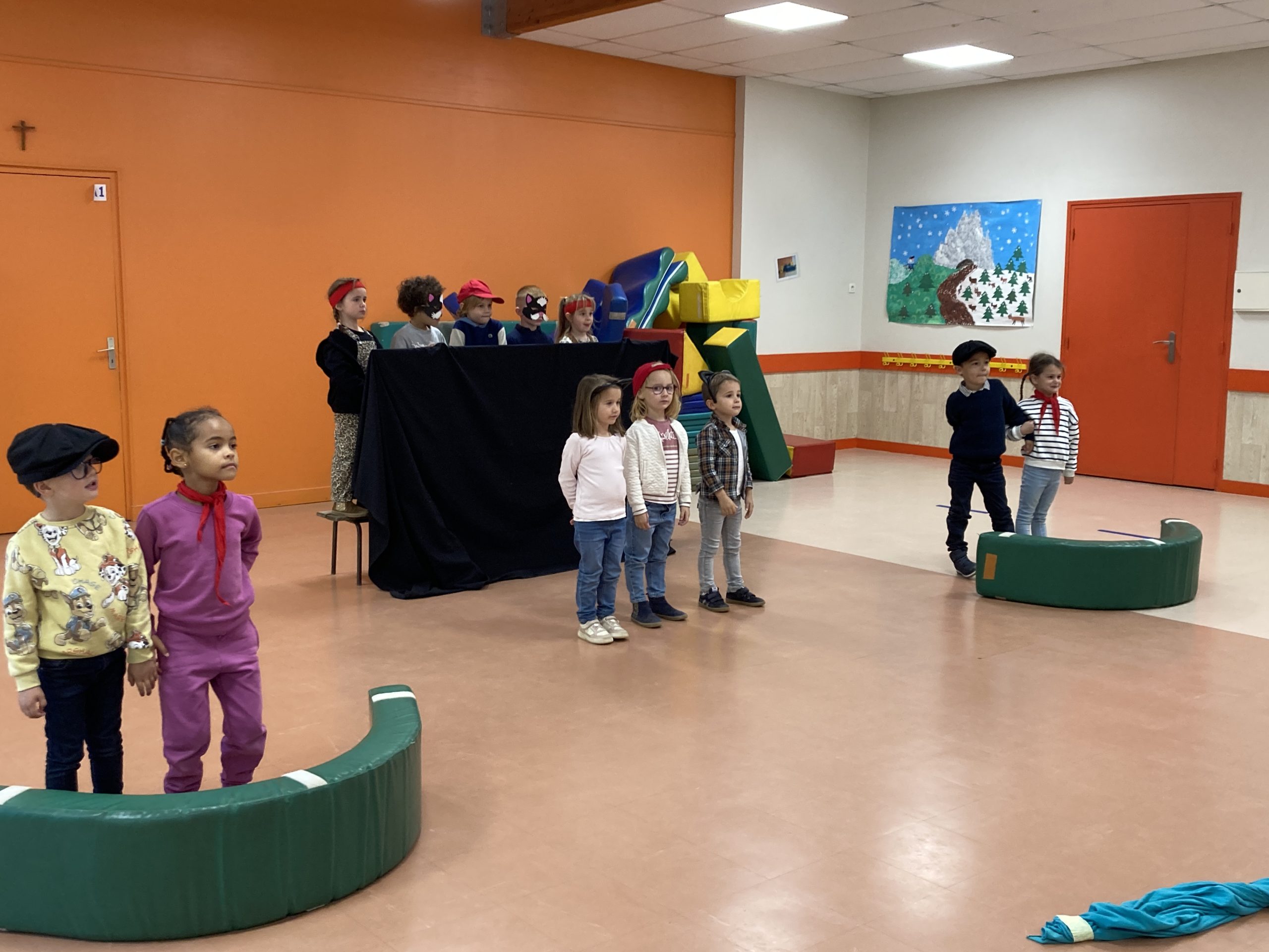 Le mardi 16 décembre, nous étions prêts pour présenter notre pièce devant des spectateurs. Nos parrains et marraines de CM1 nous ont encouragés par leurs applaudissements et nous nous sommes « lancés » sur scène pour leur présenter l’histoire de QUEL RADIS DIS DONC !, avec pour certains un petit stress intérieur.