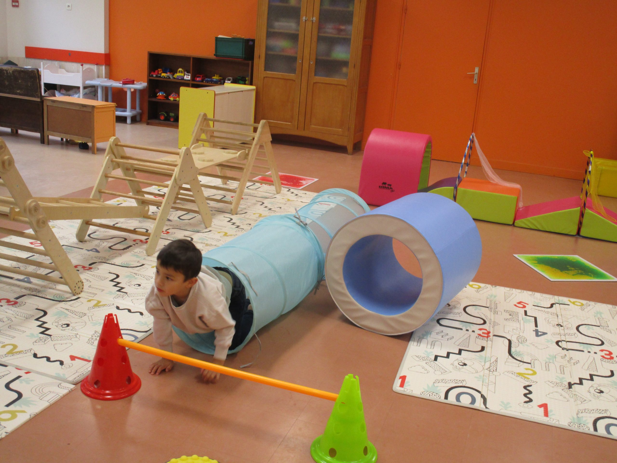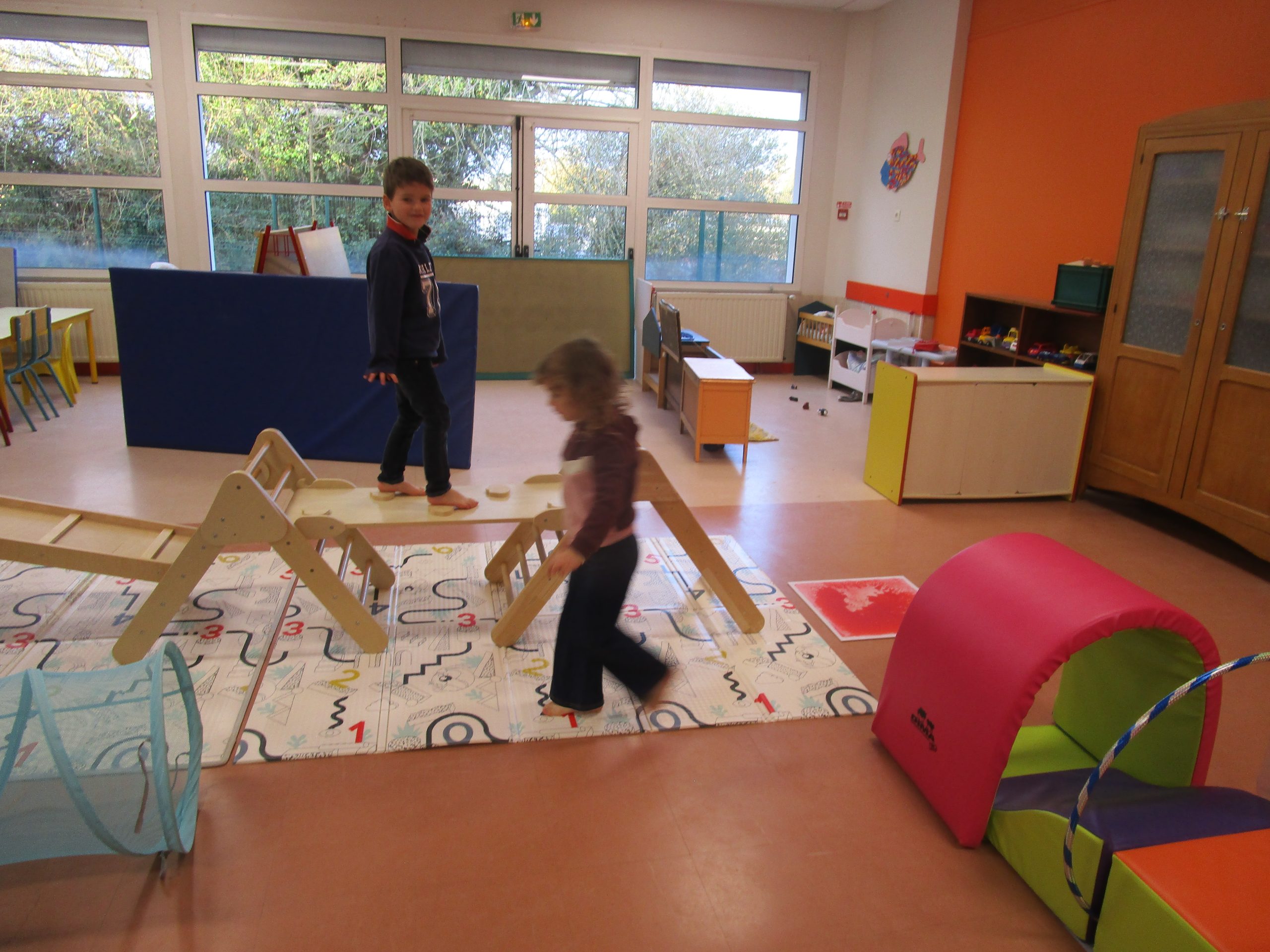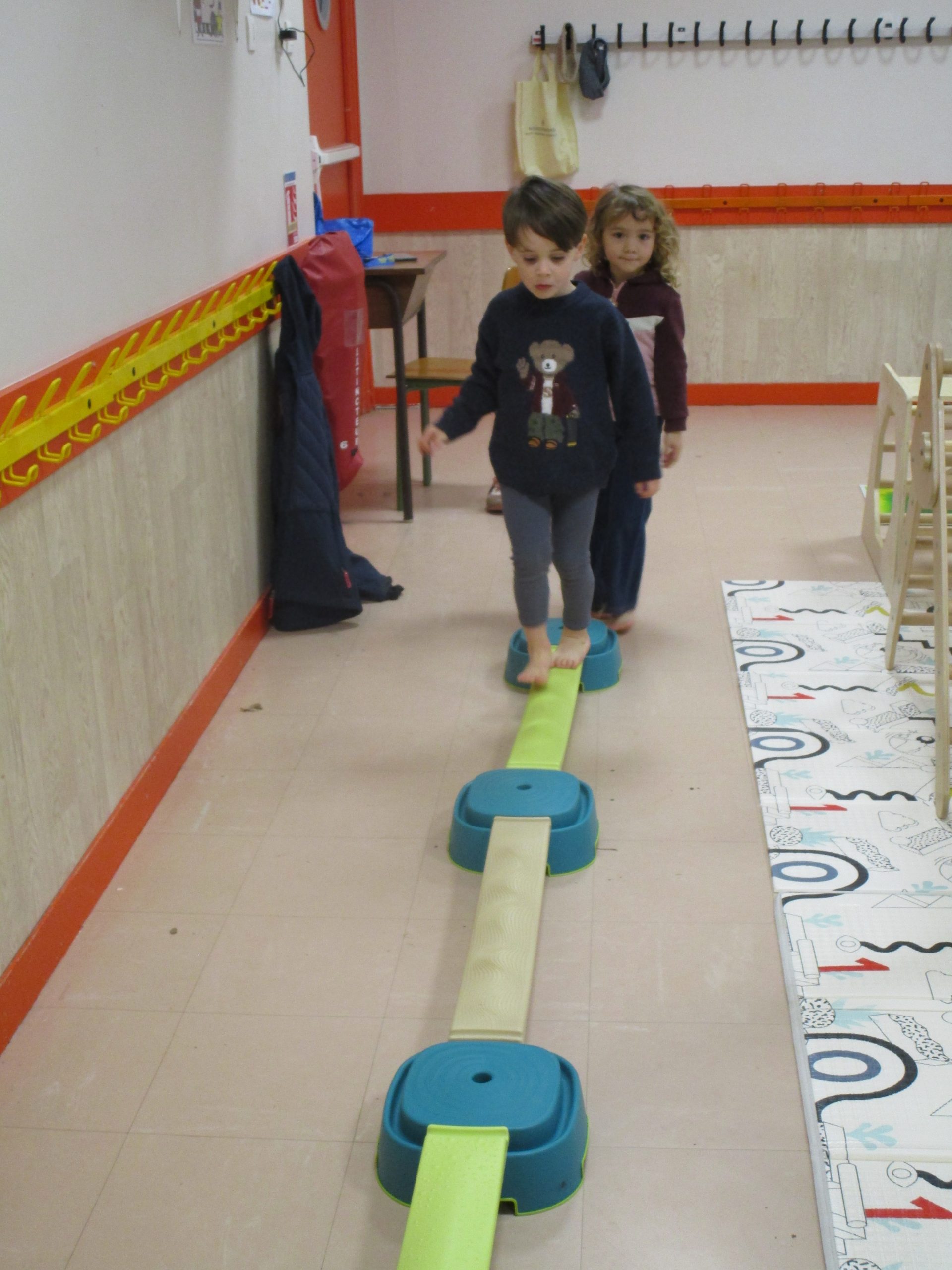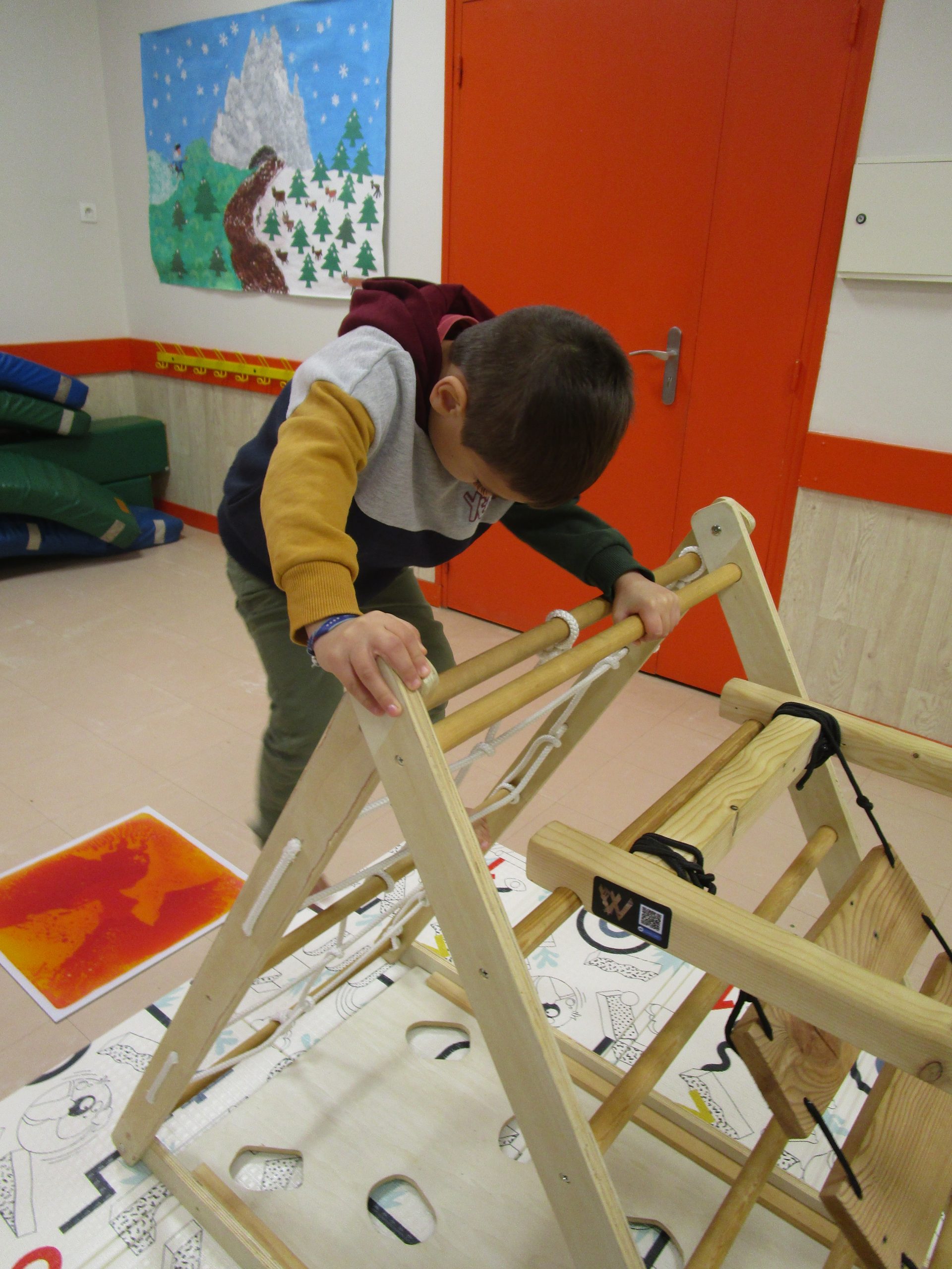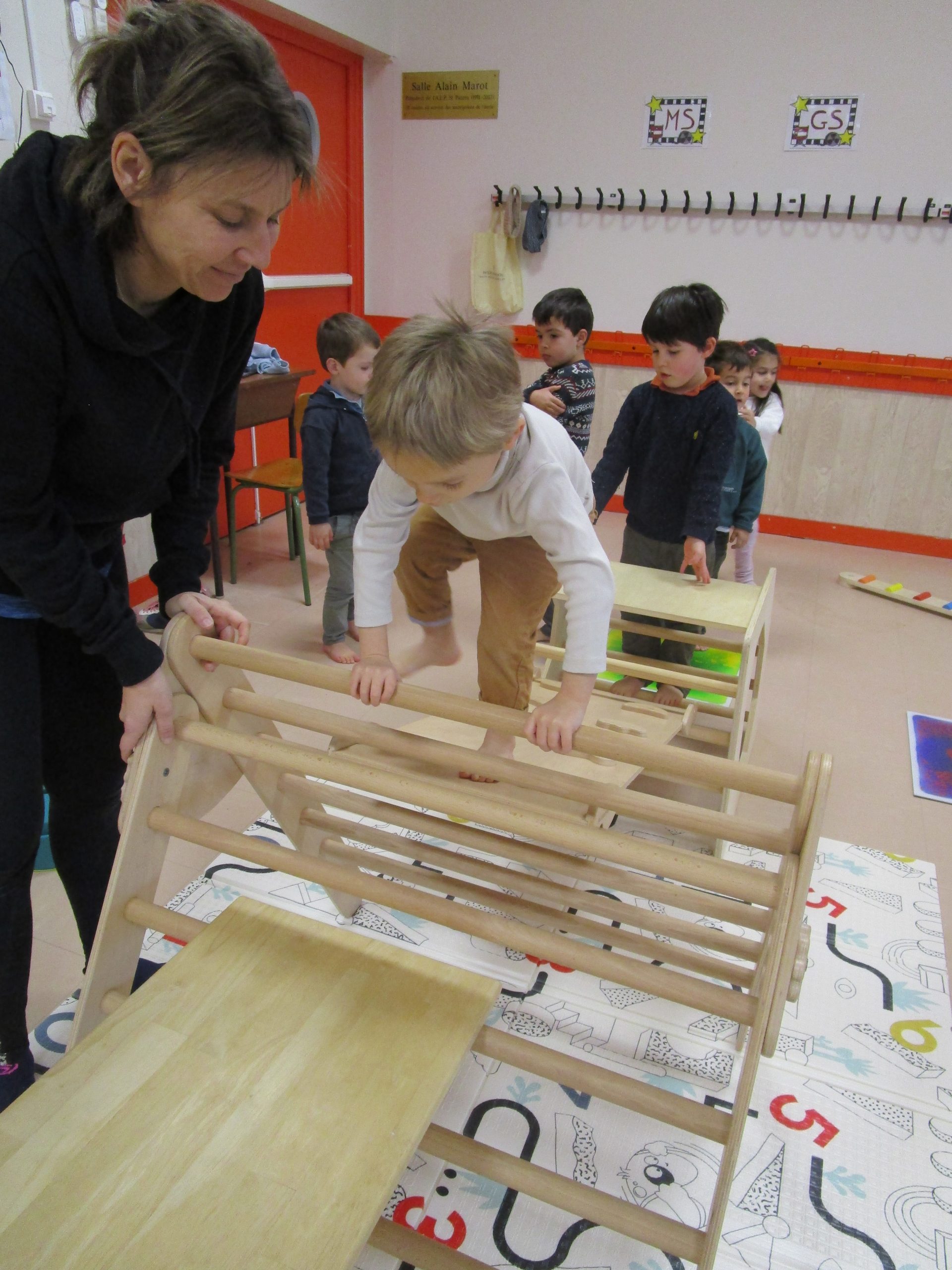 Nous avons la chance d’accueillir VALERIE, la maman d’ALIX, avec son parcours de motricité XXL. Quel plaisir de déambuler, grimper, rouler, escalader… pieds nus dans ces magnifiques structures aux multiples facettes : pont de singe, tunnel, espalier, poutres… Le plaisir des enfants était réel, très visiblement réel !!!
